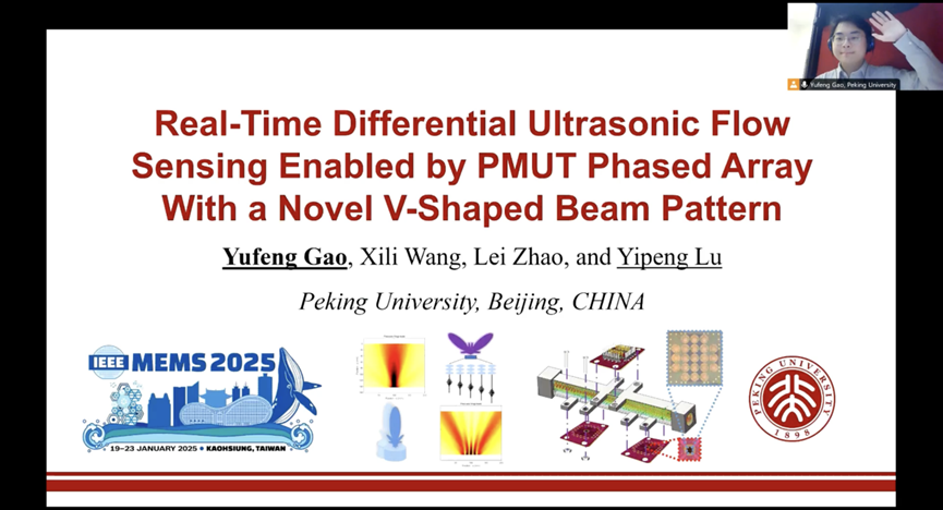 2021级本科生高毓风在该会上作为第一作者展示了论文 Real-time Differential Ultrasonic Flow Sensing Enabled by PMUT Phased Array with a Novel V-shaped Beam Pattern (《基于压电微机械超声换能器相控阵所产生新型“V”字型声场的实时差分流速传感...