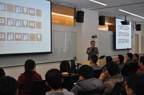 参观活动开始后,李锐经理带领同学们参观了微软亚洲研究院的会议室、讨论室、餐饮部、健身房和工作间等工作生活环境。在办公区,大家都埋头于自己的工作,走廊两边随处可见写字板,上面还记录着未来得及擦掉的思想火花;在休息区,宽阔的视野、清洁无尘的地板和温馨的沙发座椅,处处体现着自由开放的氛围,使人在繁忙过后可以放松绷紧的思绪。健身房也给同学们留下了深刻的印象,这里不仅设备先进、齐全,而且还配备了多位专业教练。正是这样舒适、良好的生活环境为研究人员的高效工作提供了良好的保障。