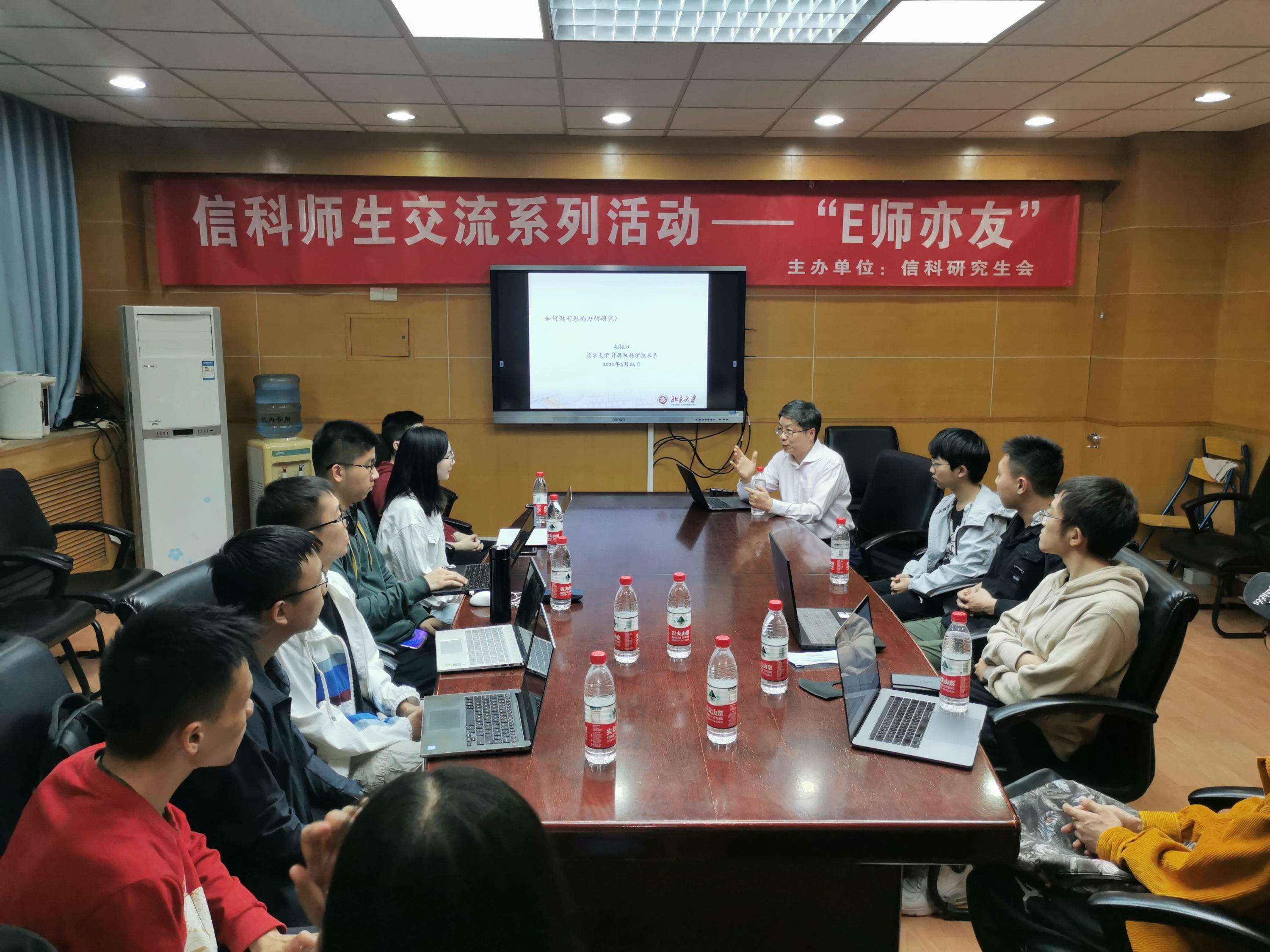 计算机系主任胡振江教授作为嘉宾,与来自学院不同专业和年级博士生、硕士生以及本科生分享科研和人生经验。同学们热情高涨,积极提问,胡振江老师为同学们答疑解惑,以亲身经历言传身教。