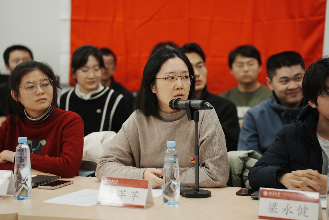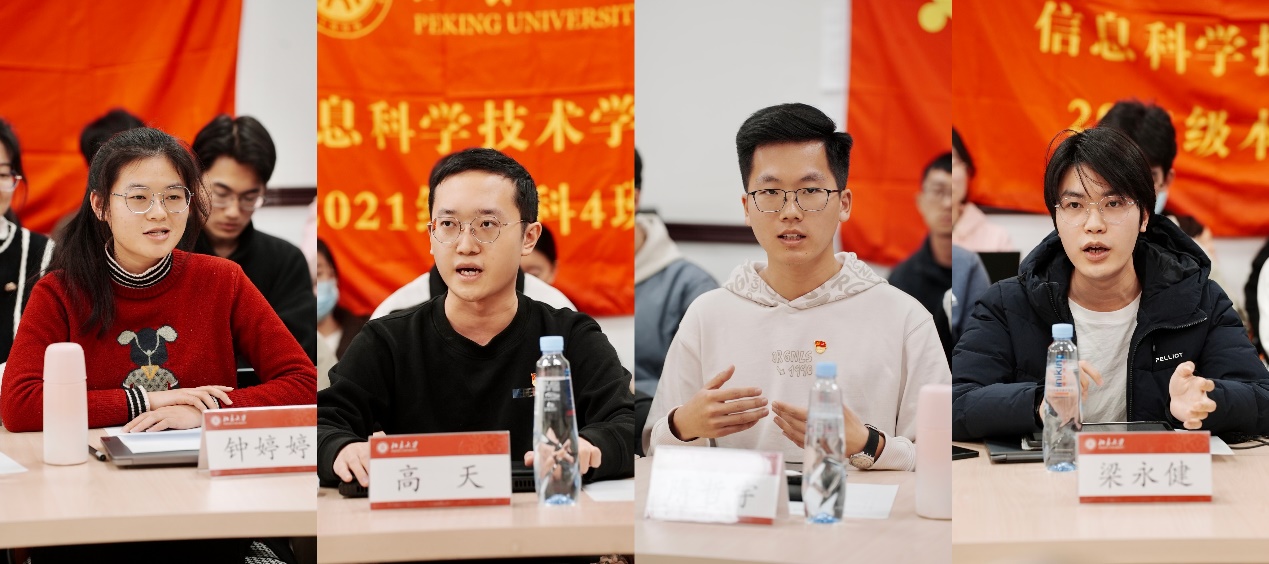 20214班班主任黄芊芊对班级情况进行了介绍。20214班为电子信息类本科生班级,班级积极响应新工科建设和国家“卡脖子”技术战略需求,专注培养具备家国情怀、学术才能、创新意识的高层次人才。在学院的建设支持和老师、同学们的共同努力下,班级在学术科研、党团建设、综合素质等方面取得了一系列成绩,先后荣获北京市先进班集体,成人网站 示范班集体、先进班集体和成人网站 思政实践课程优秀示范团队等奖励荣誉。