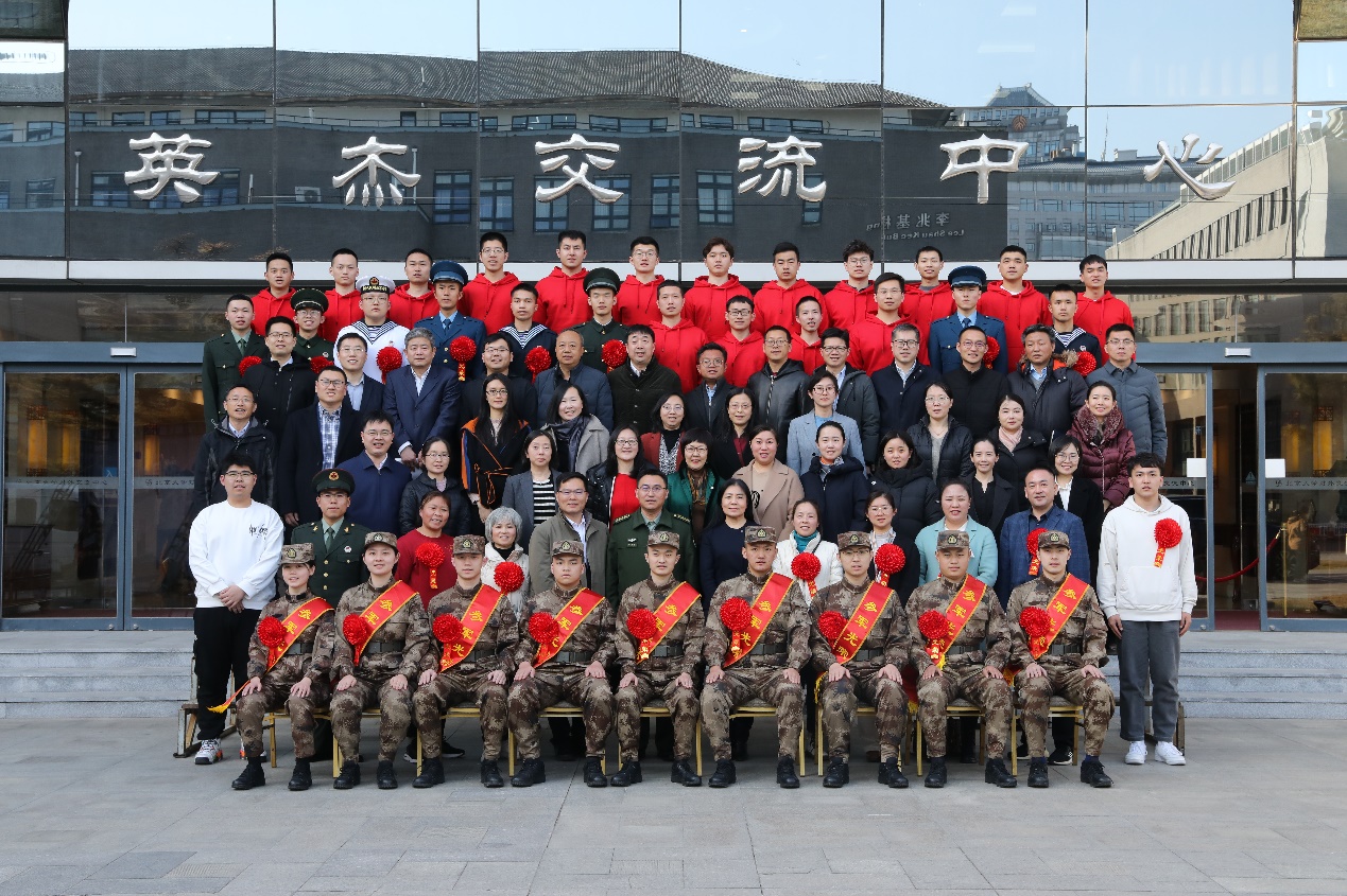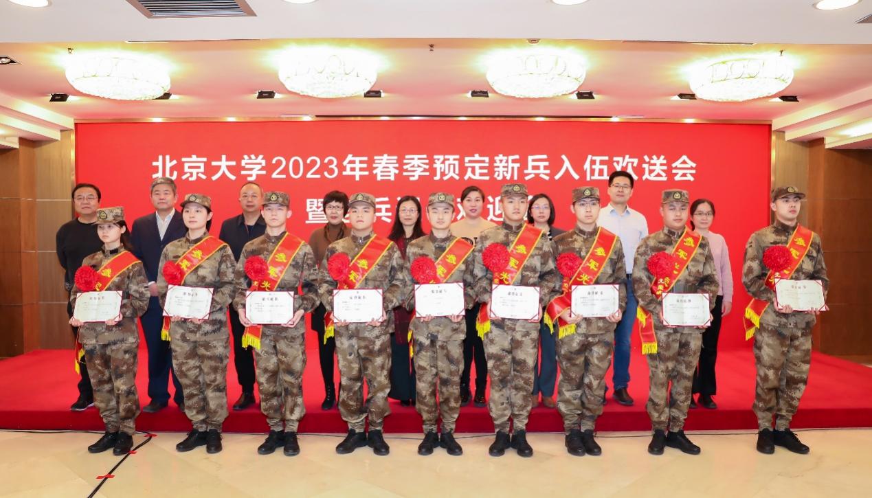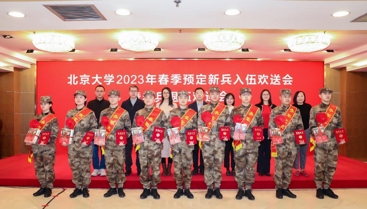 学生参军入伍服义务兵役专项奖学金荣誉证书》。学生所在院系领导为预定新兵赠送《习近平的七年知青岁月》《习近平与大学生朋友们》《燕园军旅青春梦》,勉励同学们到部队后,保持学习习惯、坚定理想信念,争做“有灵魂、有本事、有血性、有品德”的新时代“四有”革命军人。