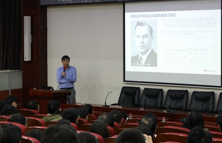 理科二号楼2129报告厅顺利举行。本期论坛邀请到海思研究部部长、复旦大学兼职教授Jeff Xu作主题为“半导体技术创新史和未来趋势”的学术报告。讲座由电子学系副系主任张志勇教授主持,150余名师生到场聆听了报告。