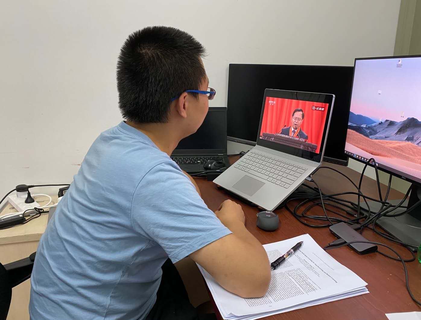 同学们认真学习观看表彰大会直播