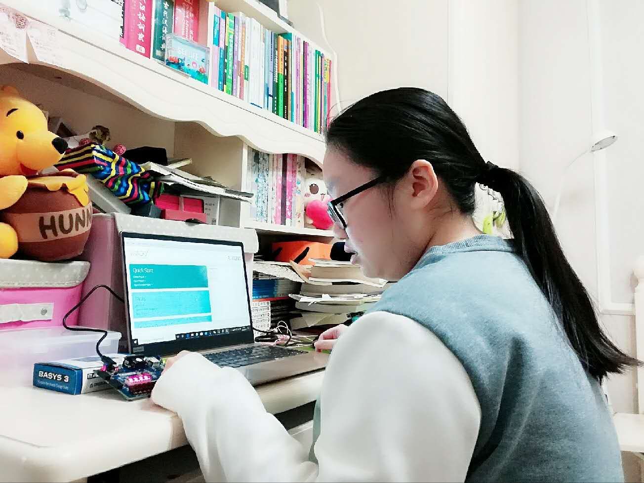 佟老师说,这次的线上教学“很新鲜”,可以促进对课程讲解和实验设计的进一步打磨。相信经历这一次突发的考验,《数字逻辑设计》课程和“口袋实验室”教学方法会日臻完善,为同学们的硬件设计能力筑牢基础。