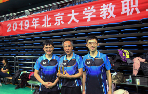 一队与数学学院一队之间展开。数学学院是学校的老牌劲旅,多次荣获冠军,这一次的巅峰对决,惹人注目。首场比赛就是我方高老师对阵对数学学院队的刘老师。刘老师宝刀不老,挥拍举手间,翩翩儒将风度,而又杀气逼人;高老师球艺精湛,气度从容、杀伐果断,一球击出,神鬼莫测。两人在场上动如脱兔、静如止水,面容平静,一旁的观众则心惊肉跳,心情随比分上下变换。终于,高老师技胜一筹,连下三局,旗开得胜。之后的两场我方气势如虹,打出了水平,蔡老师和王老师分别以3:0完胜对手。伴随着全场沸腾的欢呼,我队最终以3:0完美地结束了男子决赛,捧得冠军奖杯。这是男队成立近二十来首次夺冠,实现了一次历史飞跃。