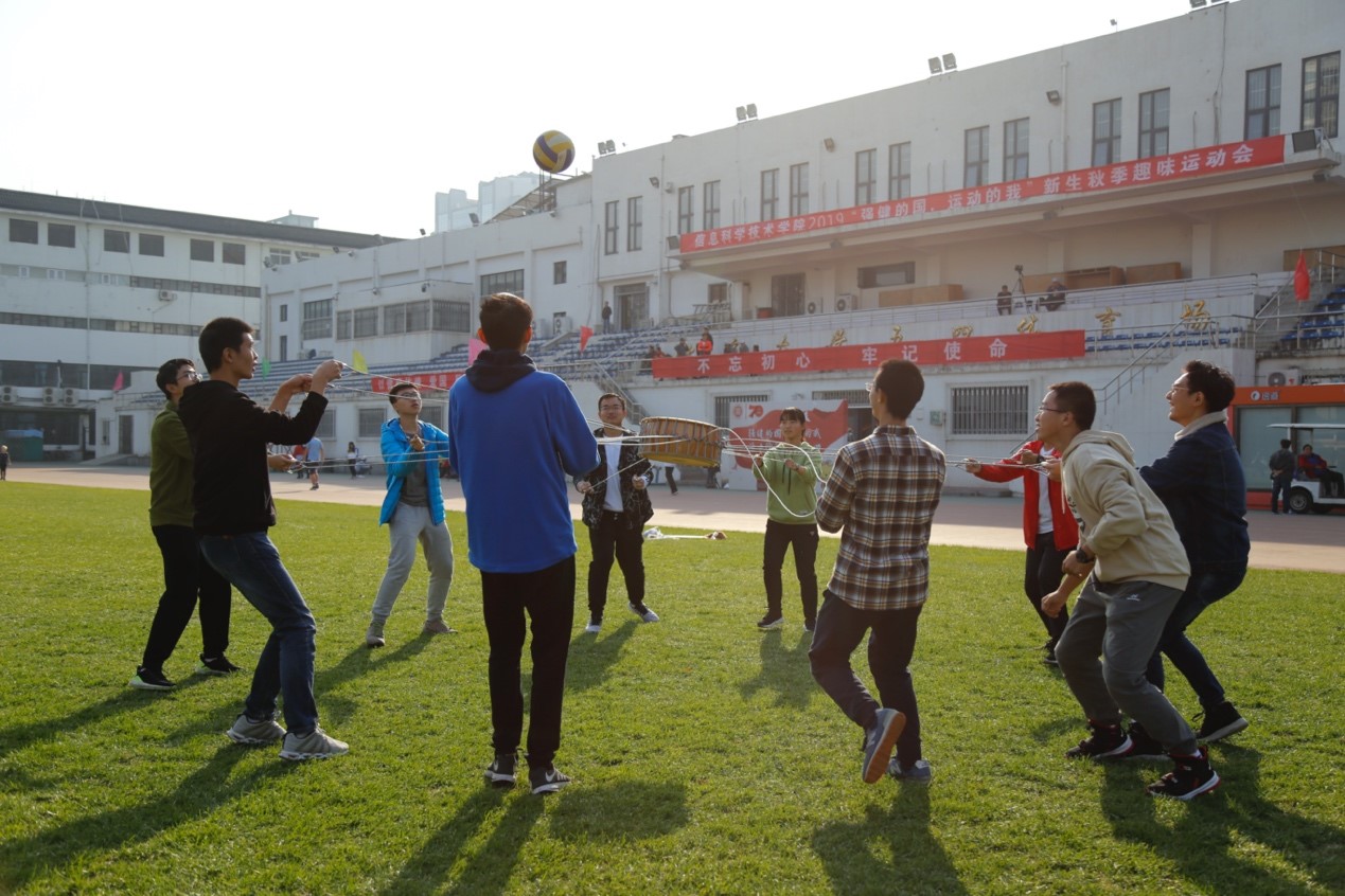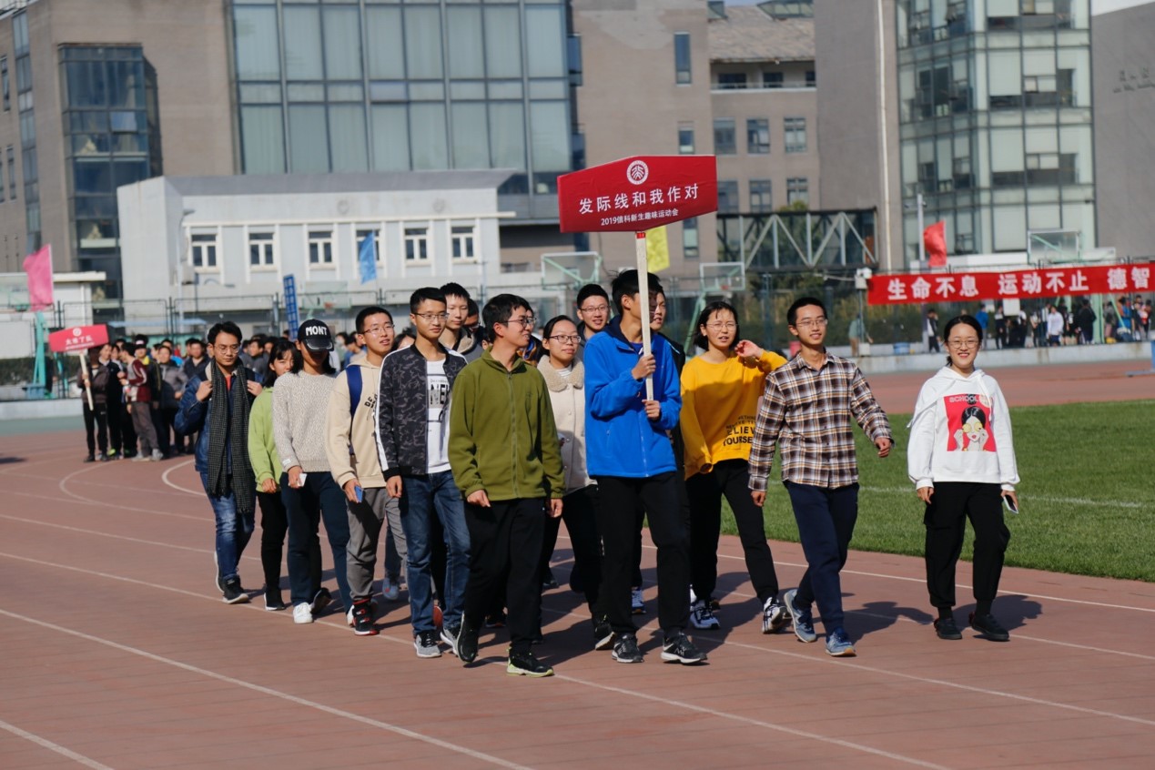 2019级本、硕、博200余名师生齐聚五四体育场,以“强健的国 运动的我 活力信科 爱你依旧”为主题,共同参加学院举办的新生秋季趣味运动会。本次活动宗旨是以运动之精神、强健之体魄来欢庆祖国70周年生日,抒发信科师生的爱国情怀。