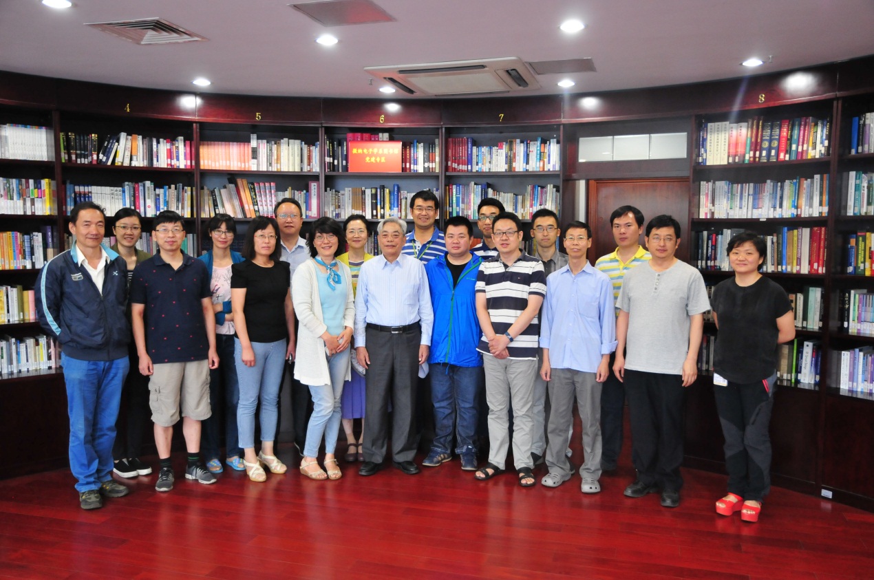 2017年6月6日上午微纳电子学党支部召开了以读书交流为主题的组织生活会。会议由支部书记王源同志主持,约20名党员和入党积极分子参加了本次活动。首先,王源同志向大家通报了图书馆党建专区的建设情况。随后,特别邀请王阳元院士带领大家学习系列讲话,畅谈读书心得。王院士从“治国理政”、“科技创新”和“教学与人才培养”三个方面,讲述了自己阅读《习近平谈治国理政》、《习近平关于科技创新论述摘编》等书籍的心得体会,并为读书活动赠送了“胸怀战略业方广,腹有诗书气自华”的题词,号召支部全体党员向习近平总书记说的那样,“真正把读书学习当成一种生活态度,自觉养成读书学习的习惯,真正使读书学习成为工作、生活的重要组成部分,使一切有益的知识和文化入脑入心,沉淀在我们的血液里,做到修身慎行,怀德自重,敦方正直,清廉自守,永葆共产党员的先进性”。