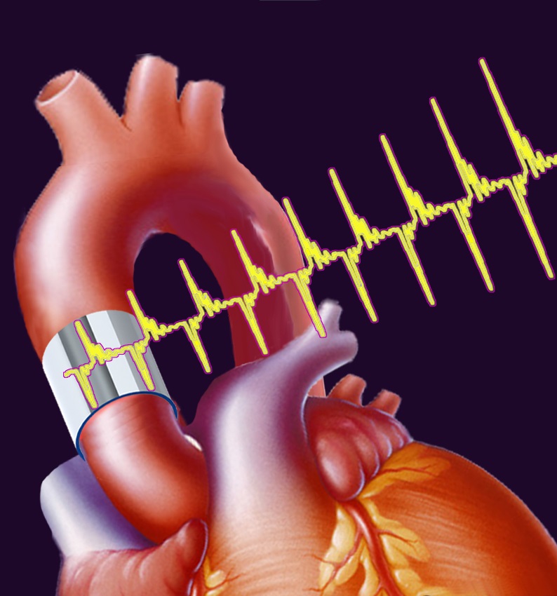 张海霞教授课题组与中国人民解放军第二军医大学附属上海长海医院张浩博士课题组在心血管能量采集领域长期合作,提出了采用条带状聚偏氟乙烯(PVDF)薄膜环绕心脏升主动脉,构成压电式微型发电机,用来采集心脏搏动收缩过程中所产生的机械能并转化为电能的植入式微型能量采集器。