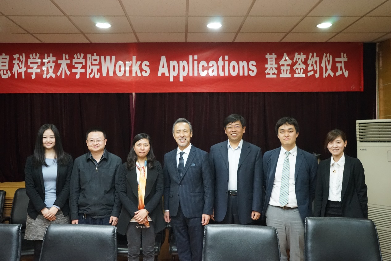Works Applications基金签约仪式在理科二号楼2135会议室举行。上海万革始应用软件有限公司董事长五十木正,国际招聘部水野克哉,成人网站