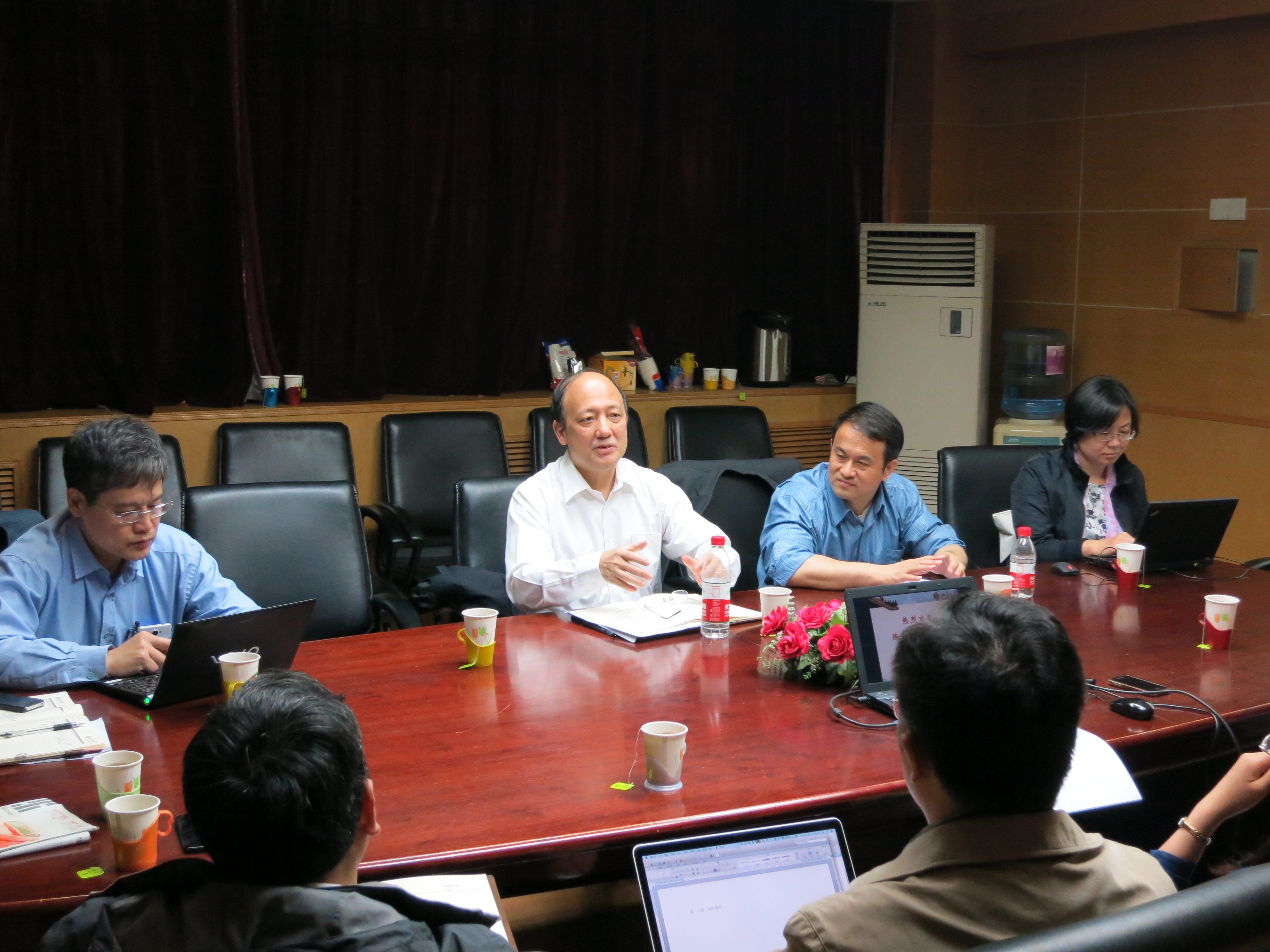 学院副院长査红彬教授、蒋云,区域光纤通信网与新型光通信系统国家重点实验室副主任陈章渊教授、微米/纳米加工技术国家级重点实验室副主任张大成教授、数字视频编解码技术国家工程实验室副主任黄铁军教授也出席了调研会。
