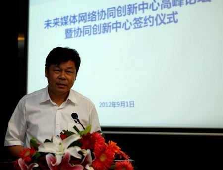 未来媒体网络协同创新中心的成立得到了国家各有关部门以及产业链各个环节的有力支持。教育部副部长杜占元,中国科协副主席赵沁平,中国科学院院士、中国工程院院士陈俊亮,中国工程院院士李国杰、倪光南、李幼平、邬江兴、高文、林忠钦,中国科学院院士梅宏,国家标准化委员会副主任方向、科技部高新司副司长胡世辉、国家发改委高技术产业司副司长徐建平、工信部电子信息产品司副司长刁石京、国家广电总局科技司盛志凡、中央电视台总工程师丁文华、广电总局规划院长姜文波、广电总局广科院总工程师杨杰出席了今天的高峰论坛和签字仪式。