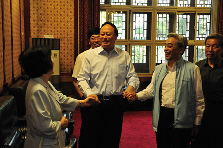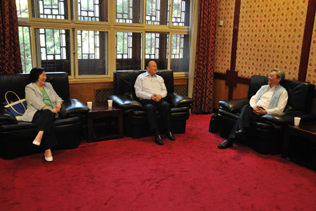 开学典礼前,学校党委书记朱善璐亲切接见和看望了前来出席开学典礼的杨芙清、王阳元、何新贵三位院士,向他们表示了关心和慰问。