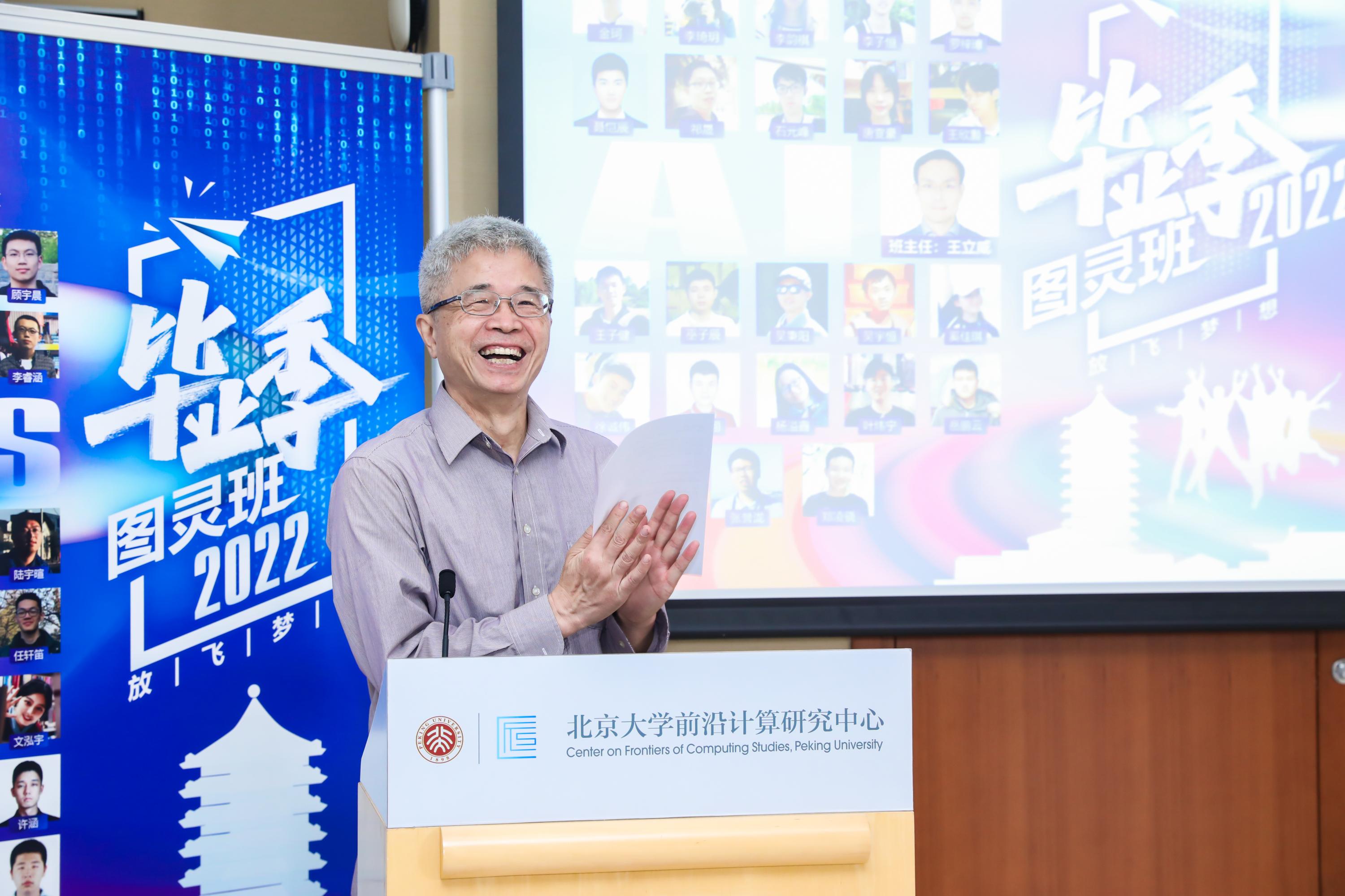 第三届(2022届)图灵班毕业庆祝会在静园五院举行。庆祝会由欧洲科学院院士、前沿计算研究中心执行主任邓小铁教授主持。在邓老师幽默风趣又满怀殷切的开场致辞中,庆祝会正式开始。