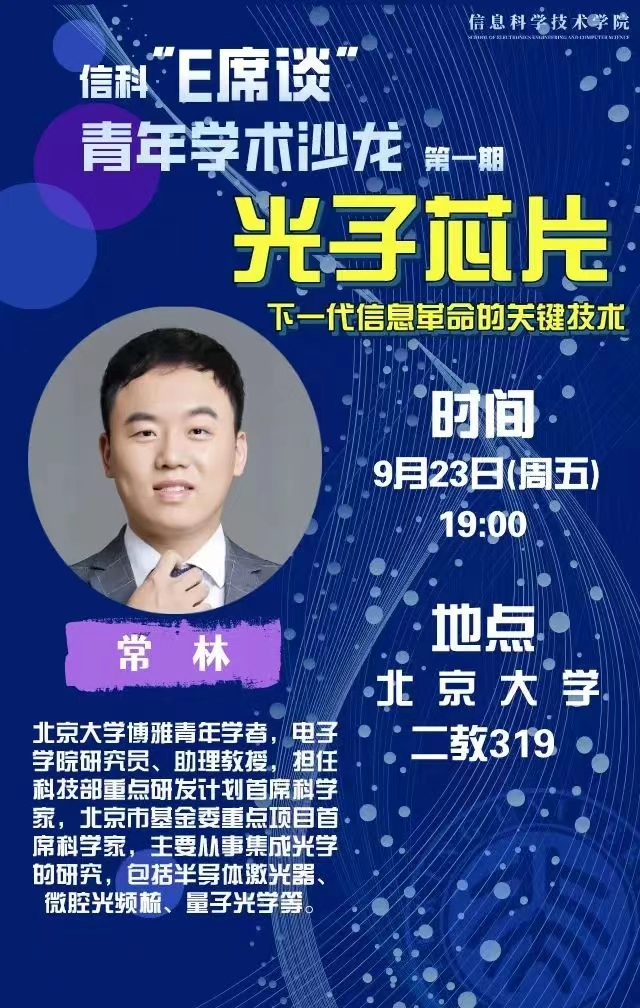 博雅青年学者,电子学院研究员、助理教授常林老师受邀进行以“光子芯片——下一代信息革命的关键技术”为主题的报告。约80名师生参加了活动。首期沙龙由学院副院长王润声老师担任交流互动环节的评议人,学院团委书记吕媛主持活动。