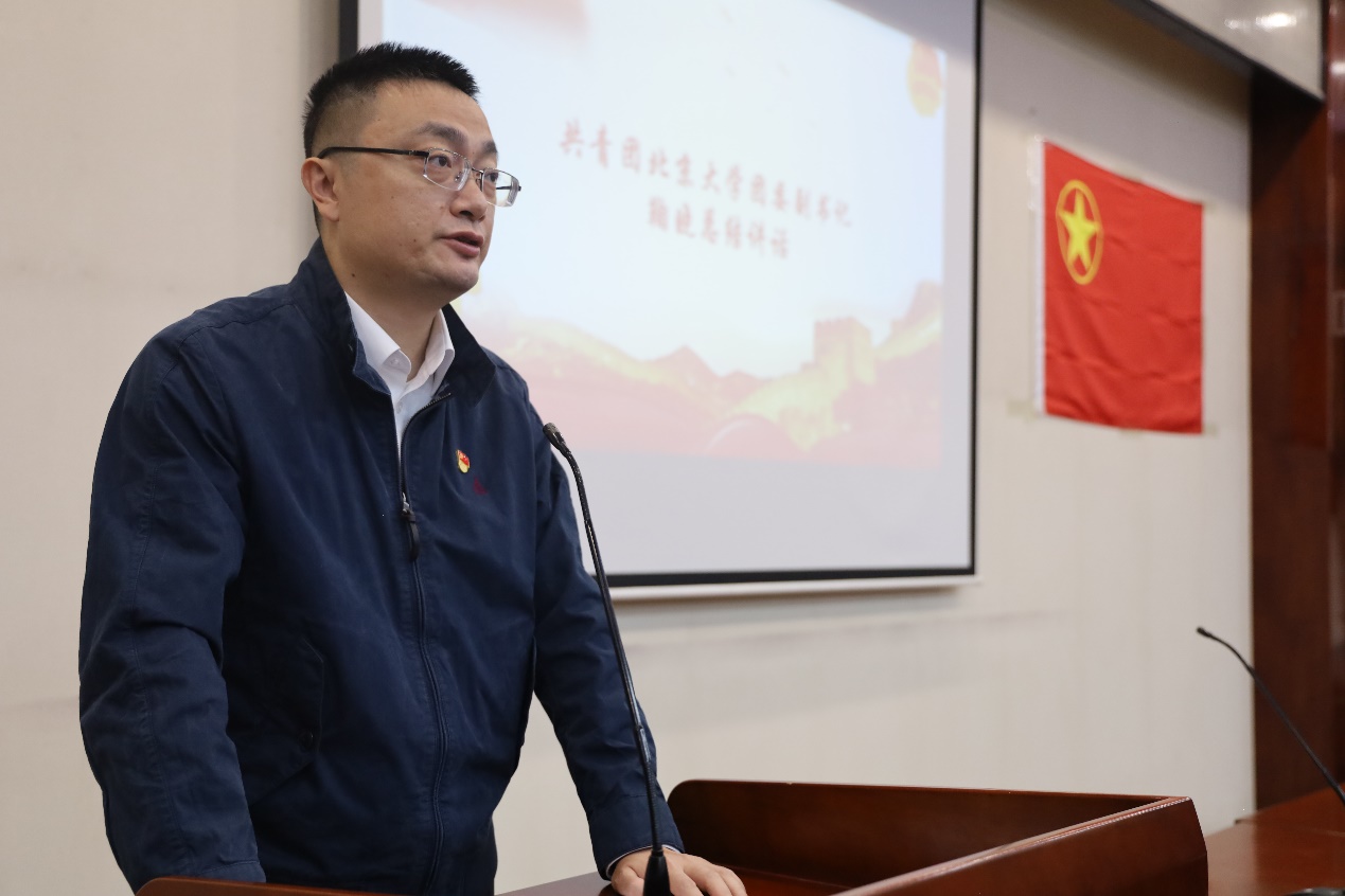 党委副书记贾方健致辞。他指出,学校是教授知识的场所,希望大家能够认真学习,充分利用联合团校这一难得的打破院系壁垒的平台;希望同学们不仅跟本院系的同学沟通,还要充分发挥自己院系的优势特长、学科特色,发现各院系的异同从而取长补短。他还指出,本次青年团校是一个高水平的舞台,希望各位学员能够用好这个舞台,不止于打卡、走过场,更重要地是沉浸式地学习。最后,他引用二十大报告中对青年同志的寄语,期许同学们通过三院联合团校得到全方面的提升。