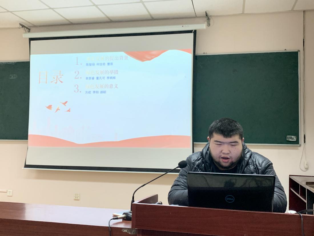 第六党小组李柄辉同志以“二十大理论学习之——绿色发展”为题,从绿色发展提出的背景、绿色发展的举措、绿色发展的意义三个部分进行学习,并着重提出加快发展方式绿色转型是全面建设社会主义现代化国家的必由之路。