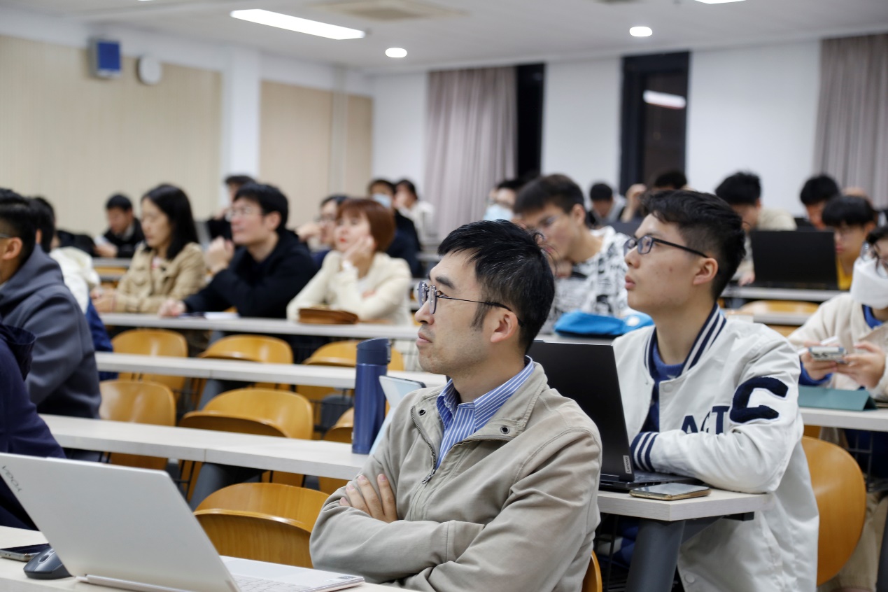 在提问交流环节,到场师生就存算一体芯片的优势、挑战、技术细节,以及知存科技良好发展的经验等问题与王绍迪先生进行了交流。王绍迪先生耐心地解答了大家的问题。