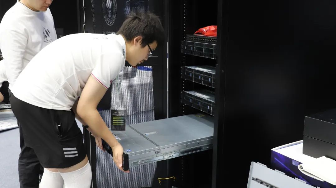 决赛要求各参赛队伍在3000W功耗约束下自行设计并现场搭建超算系统,赛题聚焦AI语言大模型、AI for Science、水文模式等前沿科学领域。总决赛期间,24支队伍还通过抽签分组形式完成超级团队赛,通过跨团队、跨地域合作,共同完成 “超级”赛题,在合作中增进友谊,在交流中迸发灵感。