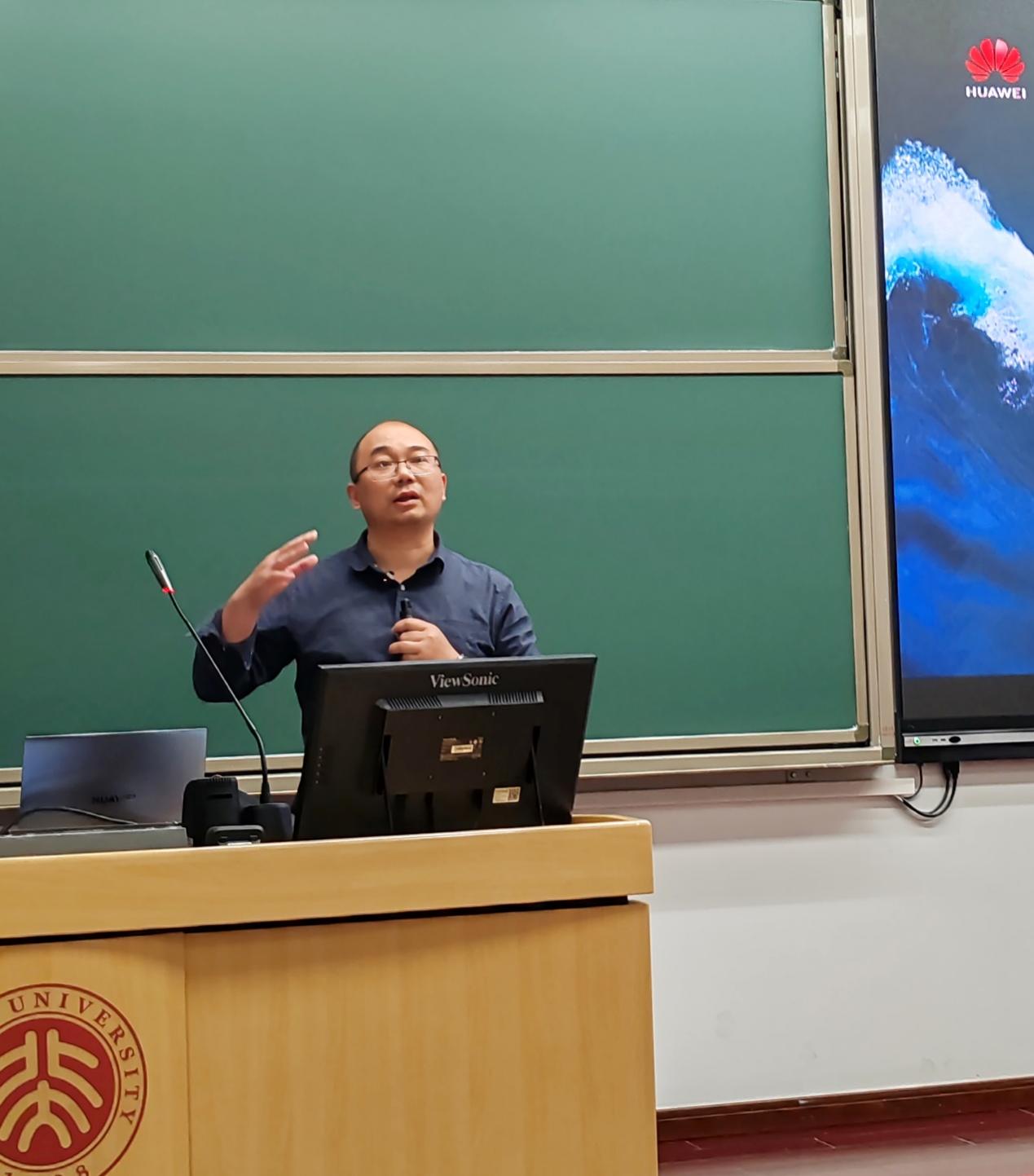接着,我们的眼光被引向了6G——这一看似遥远的技术,洪老师简要概括了6G愿景:万物智联,数字孪生,海陆空连接,并为我们展示了华为当前的关键课题,如5GC、5.5G、边缘推理计算等等,并殷切表示“等待北大学子携手探索”。