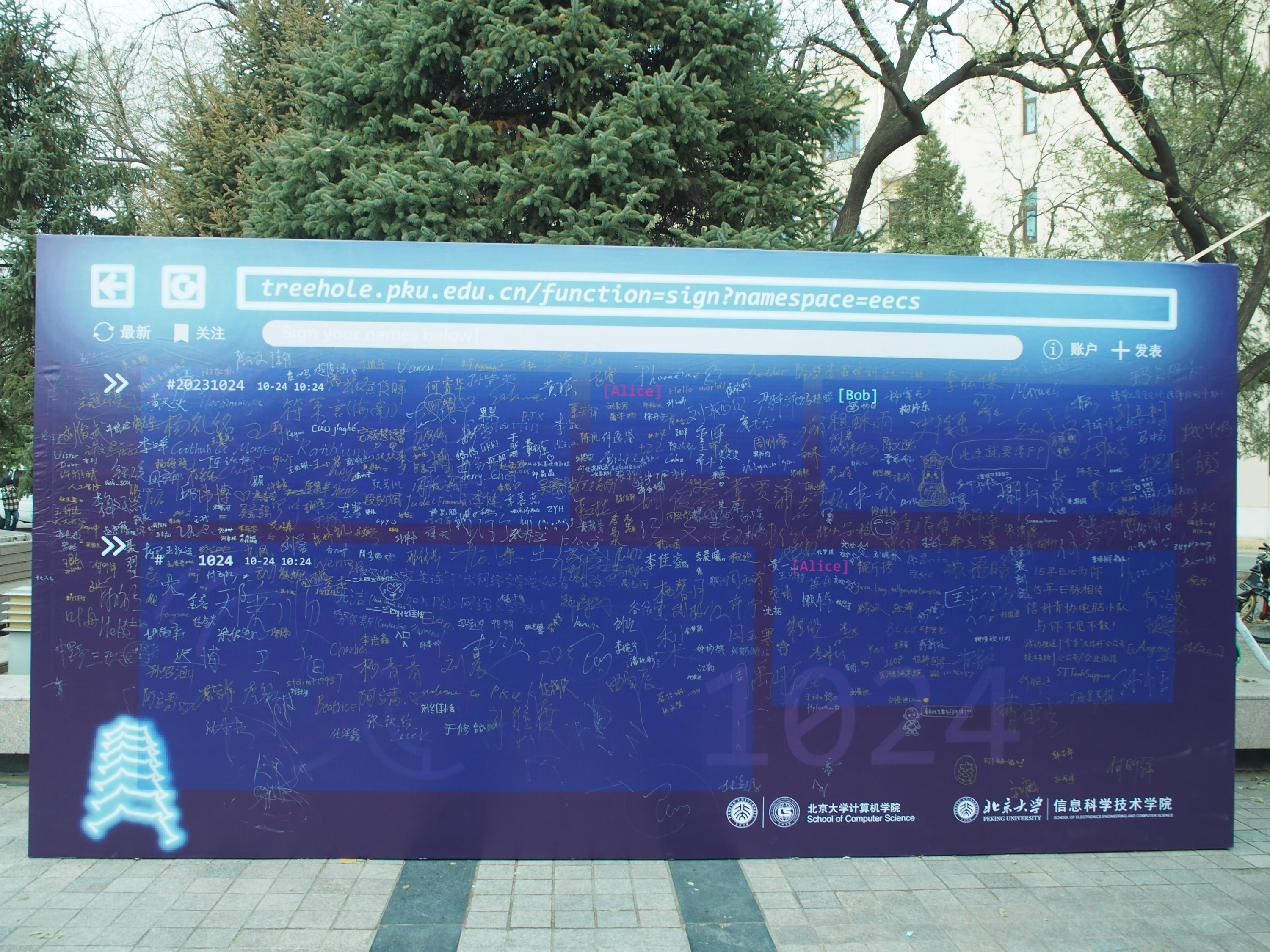 在百周年纪念讲堂南广场举办“青春逐梦攀高峰,强国有我启新篇”1024文化艺术节活动。活动集学科成果展览、沉浸互动体验、舞台文艺汇演于一体,全方位展现了计算机学科发展的光辉历程和北大青年的青春风貌。