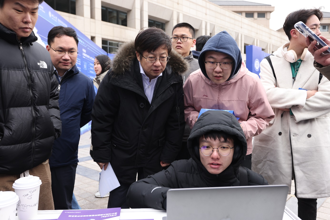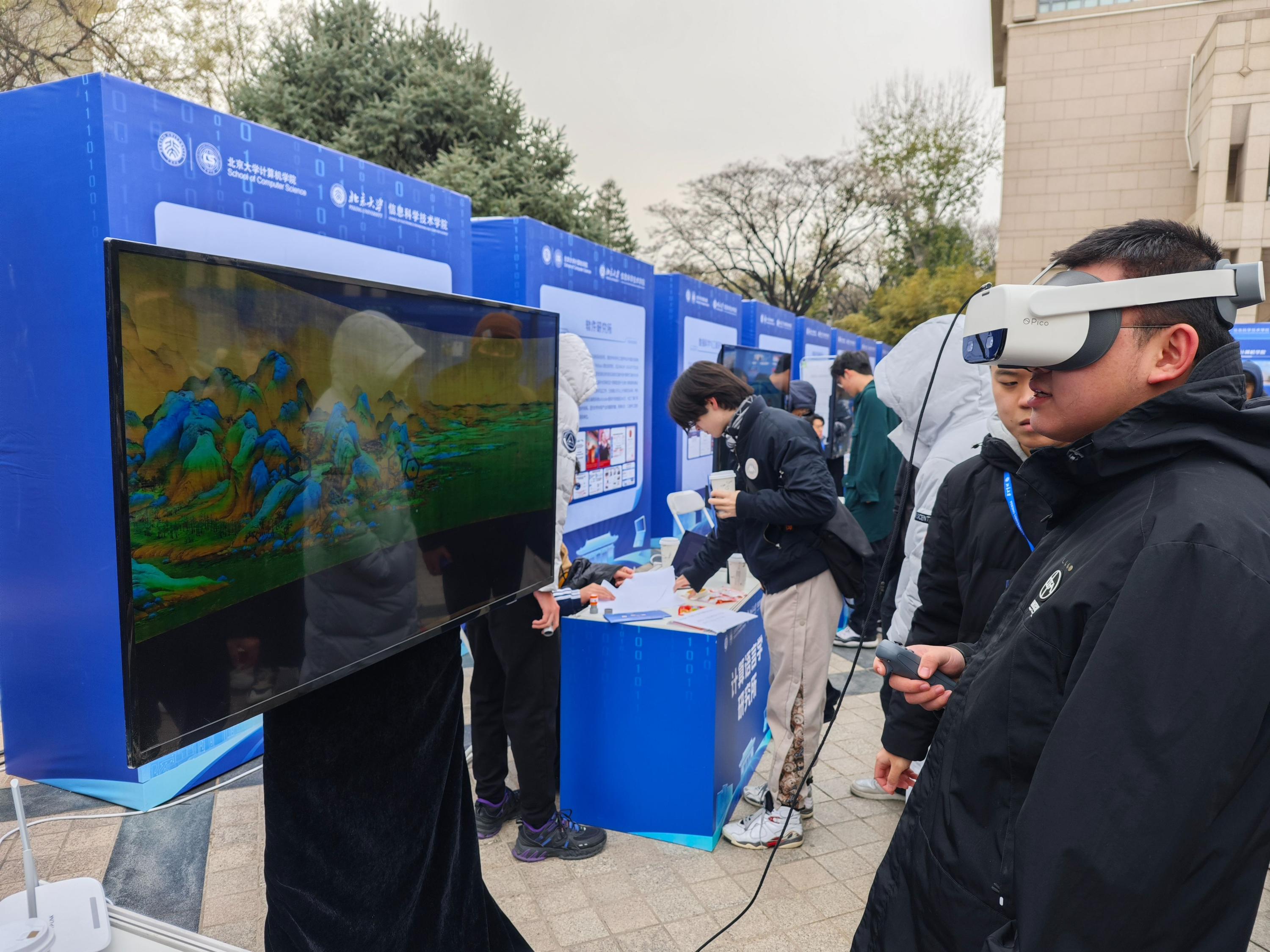 各研究所和中心的志愿者同学们在展位前耐心地向围观的师生介绍前沿科技成果,通过生动的讲解和深入的交流,他们使复杂的科学概念变得易于理解和体验。大语言模型、VR和AR技术在这里不再是生涩难懂的科学术语,参观者们不仅获得了知识的启迪,还在各摊位上体验了丰富多样的模型展示、趣味游戏和有奖问答,使得学习既充实又富有乐趣。