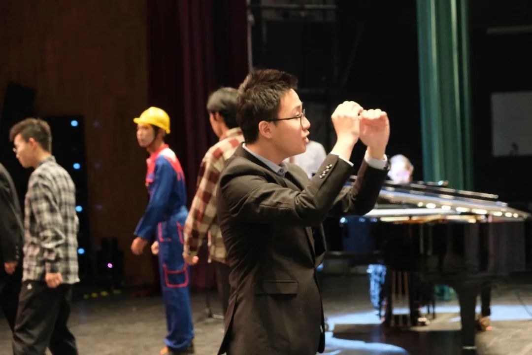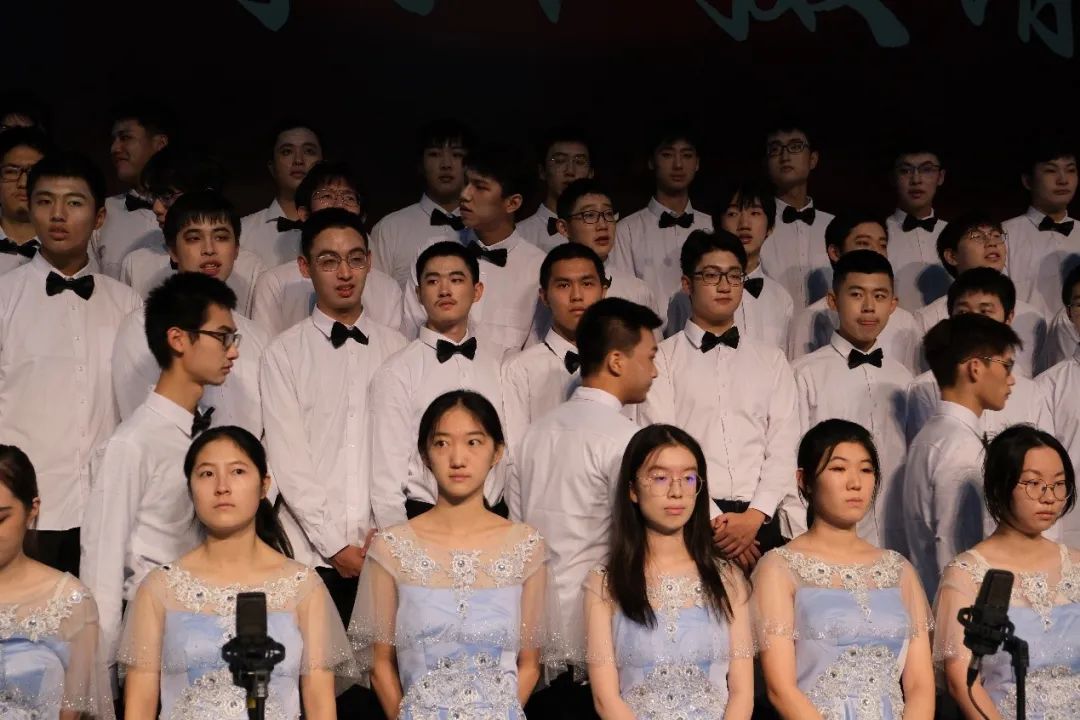 在台上,尽管在排练时已经听过无数遍开头的伴奏,但当共青团团歌在钢琴、小提琴与小号的协奏中悠然奏响,心中还是会为之澎湃激荡。那是初生的共青团,是那时中国先进青年的聚集处,如朝阳为旧中国带来曙光。伴着阵阵歌声,大家仿佛清晰地看到1935年走上街头示威游行的学生们,真切地感受到他们心中熊熊燃烧的爱国热情;舞台组同学们的表演则用充满力量与希望的舞蹈动作传达出“点点星火汇成璀璨星辰”。历史的车轮缓缓向前,在这百年的时光里,同学们好像看见千千万万坚守在平凡岗位上的英雄燃烧自己的青春年华,铸就今日之中国的灿烂辉煌。“我是朝阳,我是屏障“,同学们将时刻准备着,接过那汇聚着万千热血的初衷,唱响属于新时代中国的强国之音。一曲《有我》在高亢嘹亮的小号声中结束,但小狮子们却沉浸其中,歌词旋律在耳边萦绕,久久不能散去。