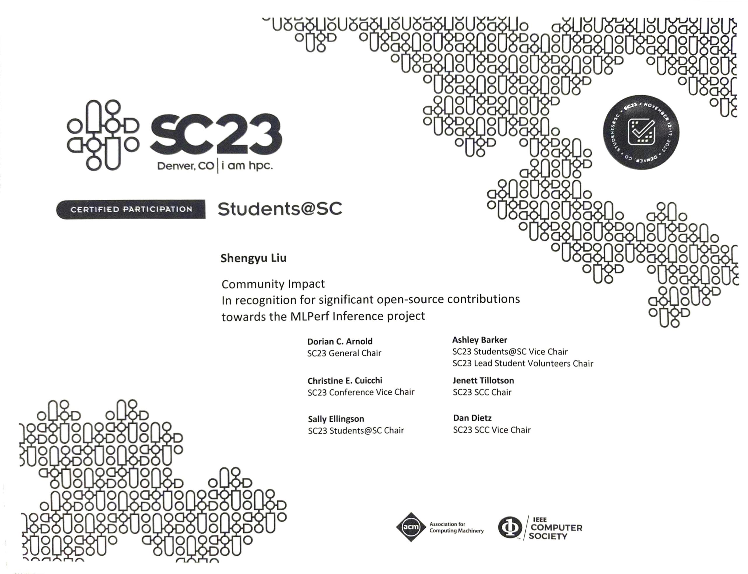 在机器学习基准性能测试MLPerf赛题中,队员们通过多重优化技术(包括在多台机器上同时并行运行、重新编写GPU算子、进行算子融合等),在该项赛题上排名第一,且因为开源社区作出贡献而获得主办方嘉奖。在论文复现赛题中,队员们成功找出对赛题有关键性影响的漏洞,提出解决方案并获得组委会认可,加上严谨的实验设计,最终在该题目上获得满分。得益于在各赛题中的稳扎稳打,北大超算队最终总成绩排名第二。