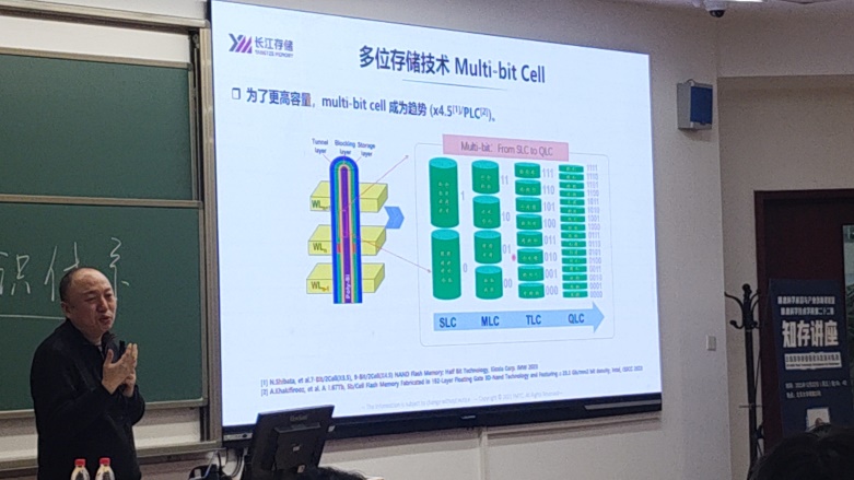 最后,靳老师对长江存储公司的发展历程进行了介绍,讲解了YMTC NAND Xtacking技术的业界首创性。介绍了长江存储的产业链生态,增进了同学们对闪存技术相关产业的了解。
