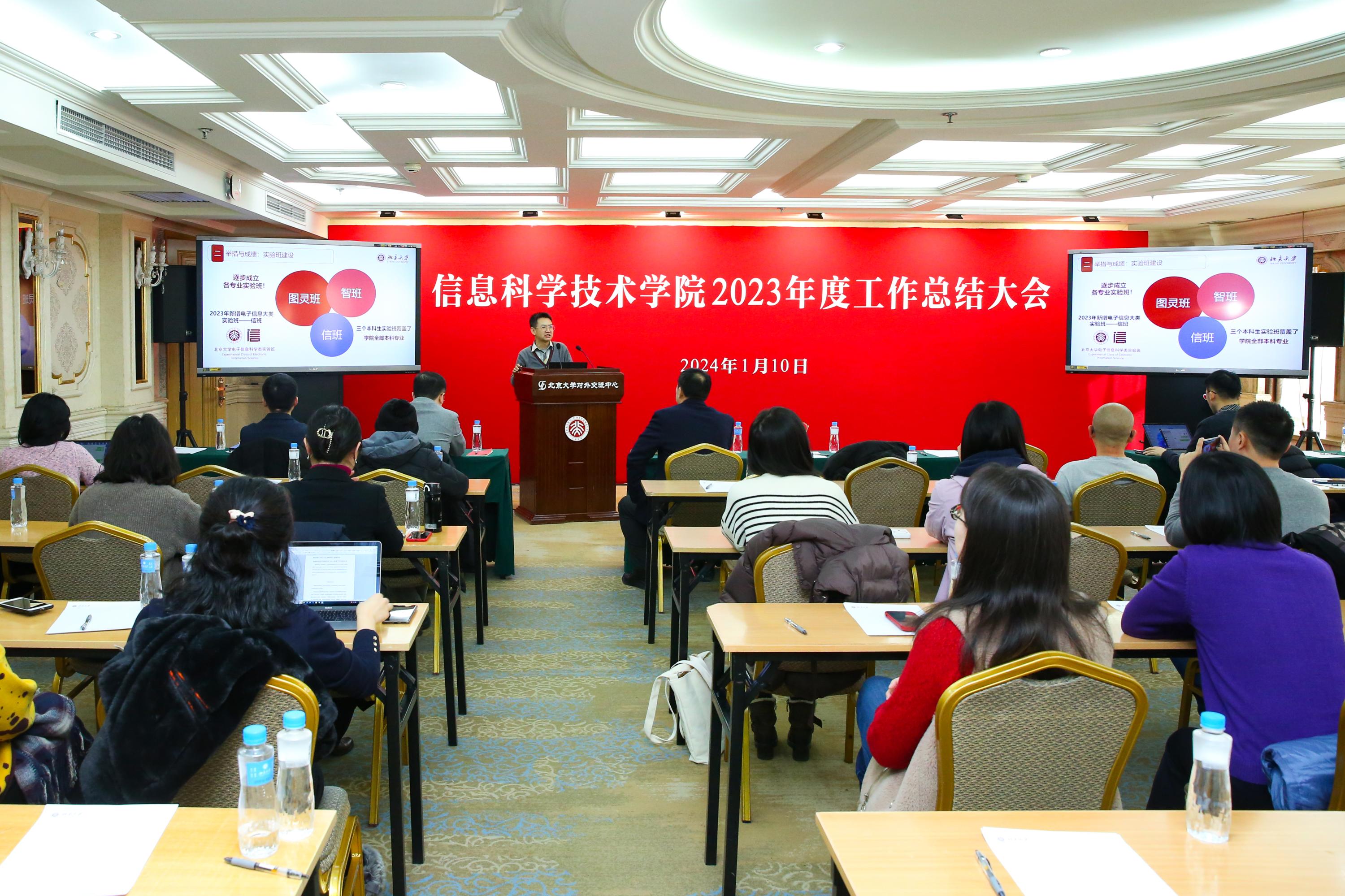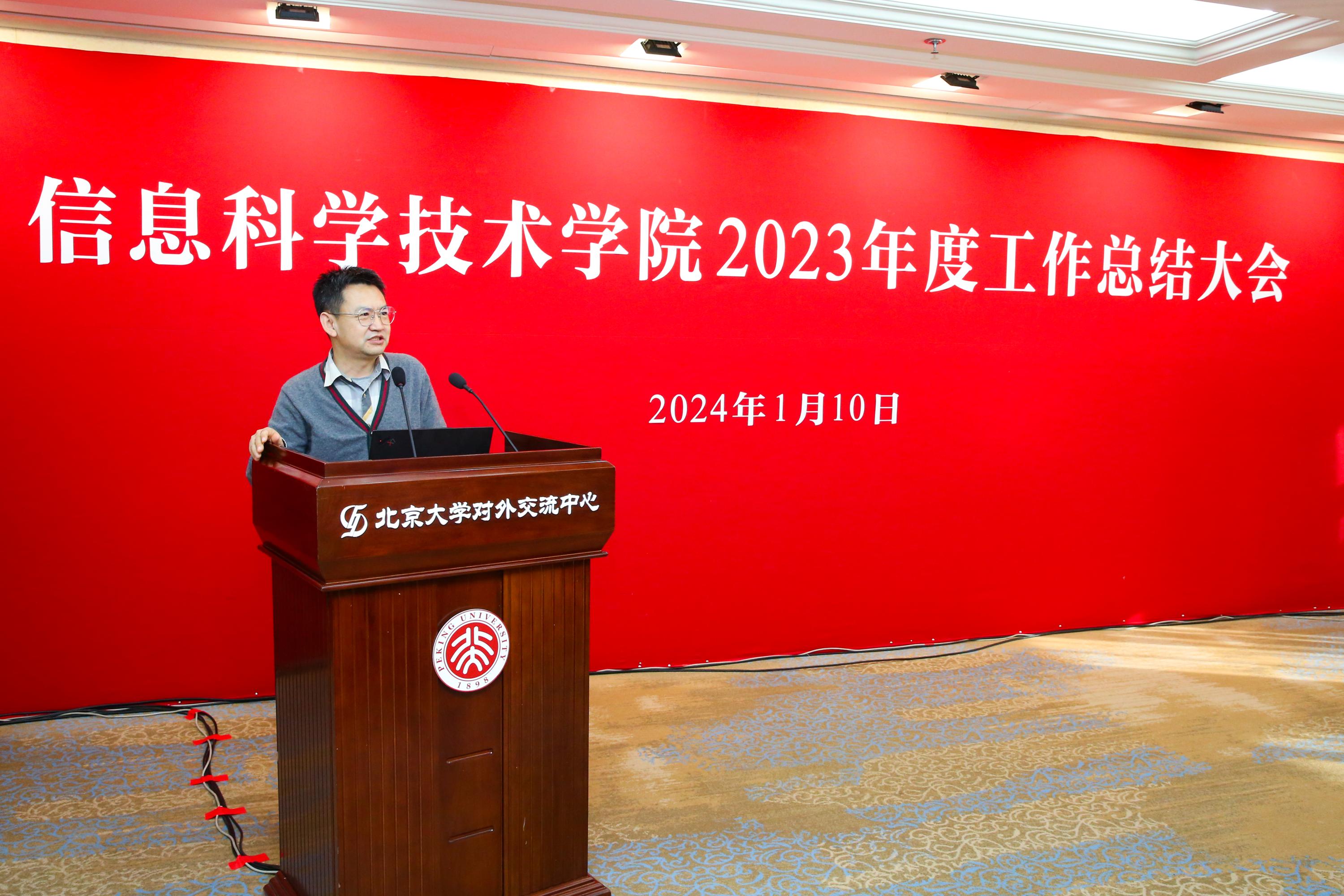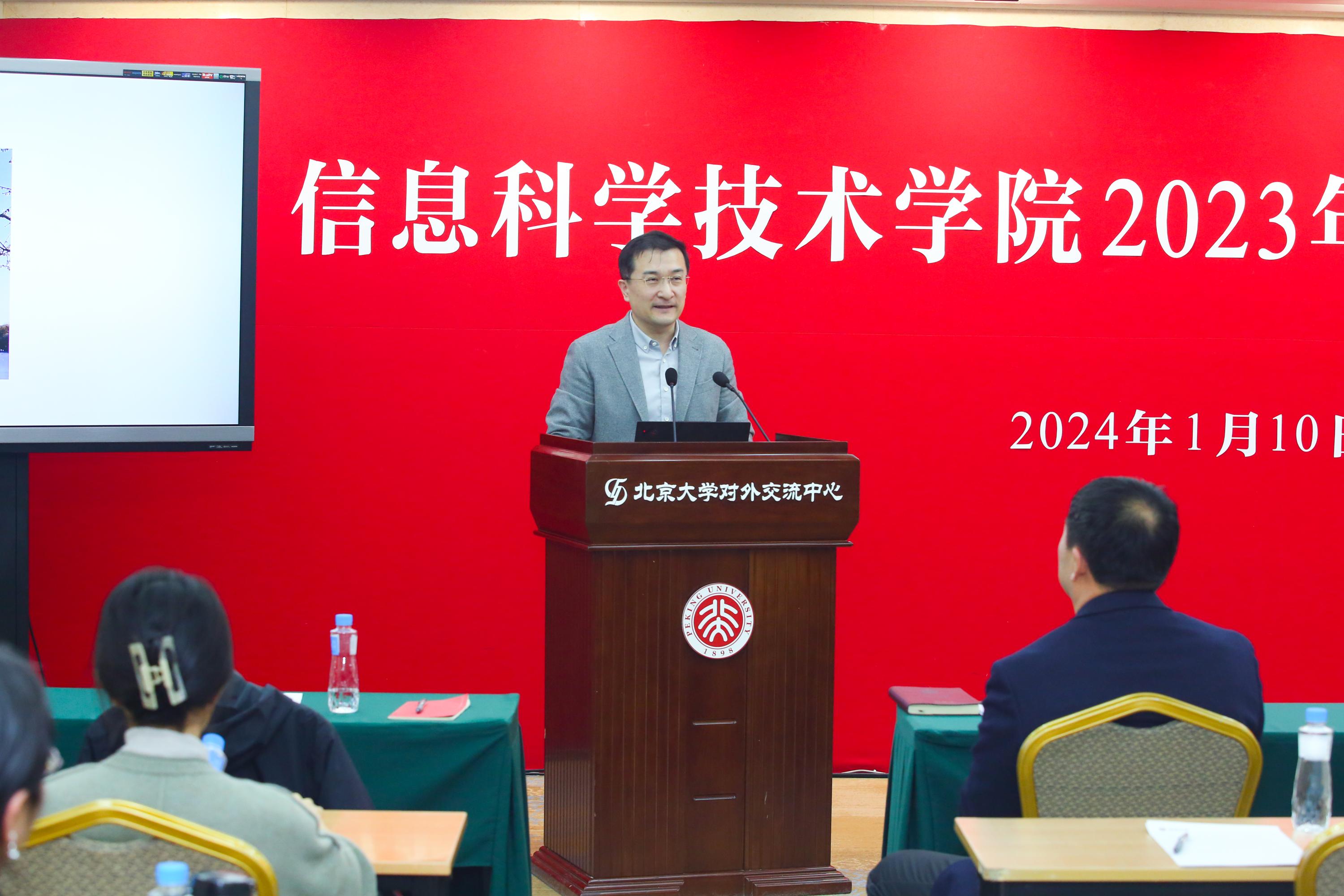 学院党委副书记贾方健从学院学生基本情况、思政教师队伍、思政体系育人成效的工作引入,通过德智体美劳五育并举举措,对2023年全年工作进行重点汇报和交流。回顾2023年工作,有精彩时刻,也有惊心时刻。学院通过宣传利剑,不断增强北大信科的社会影响力。一年来,学院荣获“北京市十佳班集体”、“成人网站