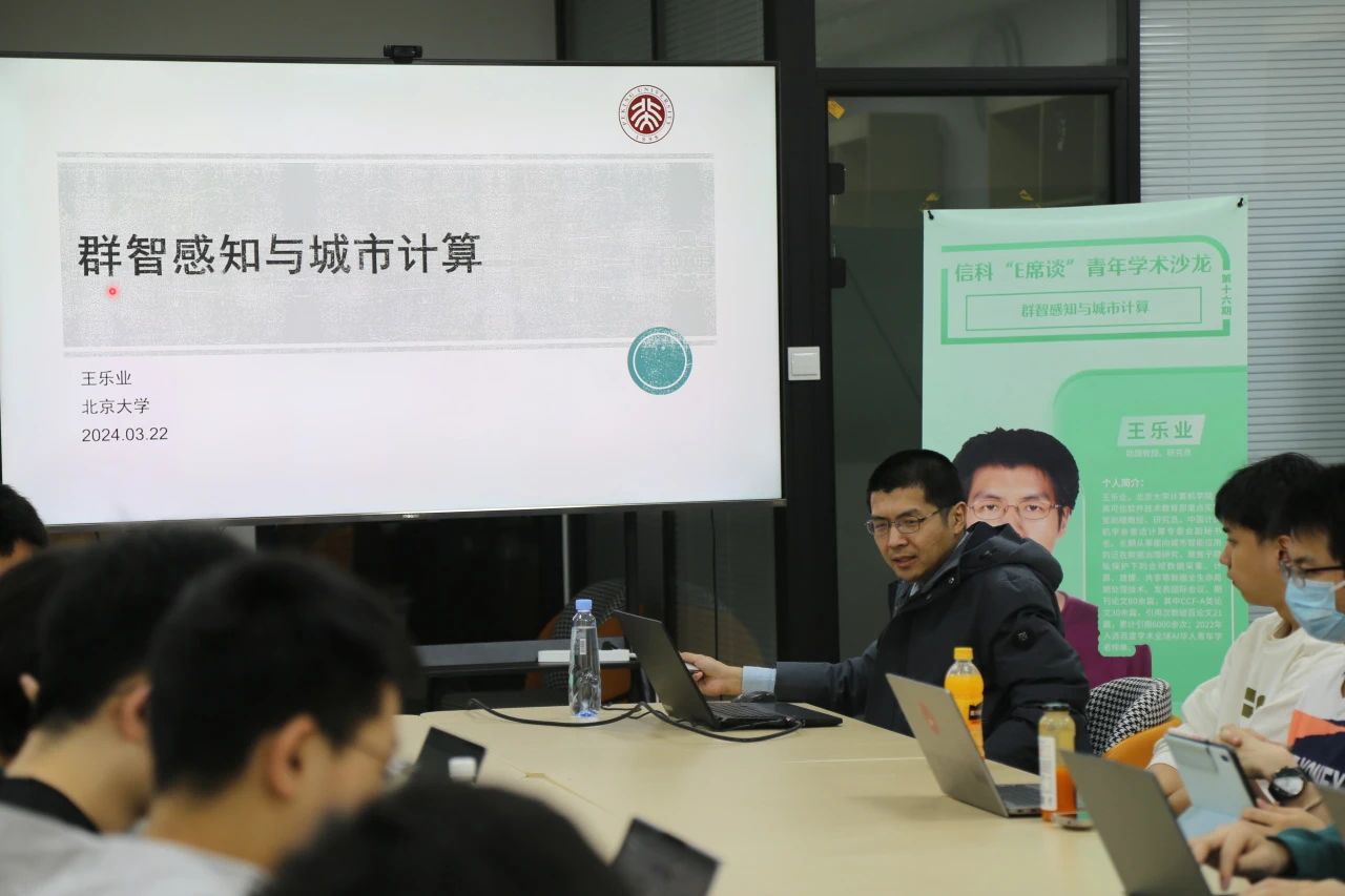 计算机学院、高可信软件技术教育部重点实验室助理教授、研究员,中国计算机学会普适计算专委会副秘书长王乐业老师受邀进行了以“群智感知与城市计算”为主题的分享。本次沙龙由院青年志愿者协会梅志垒同学主持。学院团委书记吕媛老师参加了活动。