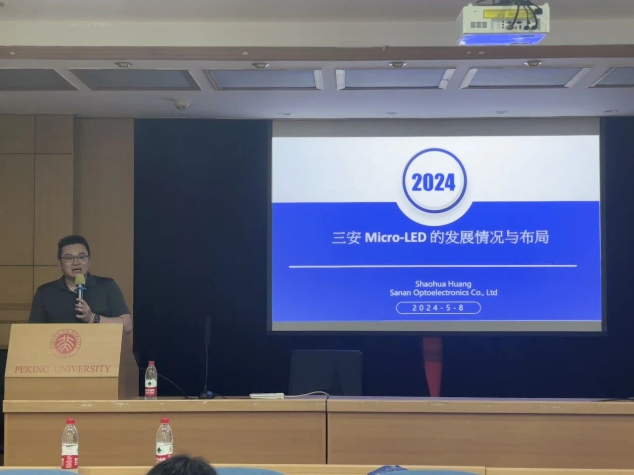 电子学院康佳昊研究员主持,邀请到了来自三安光电公司氮化镓事业部的高级副总经理-黄少华和厦门市芯颖显示科技有限公司的副总经理-谢相伟分别进行精彩的演讲。
