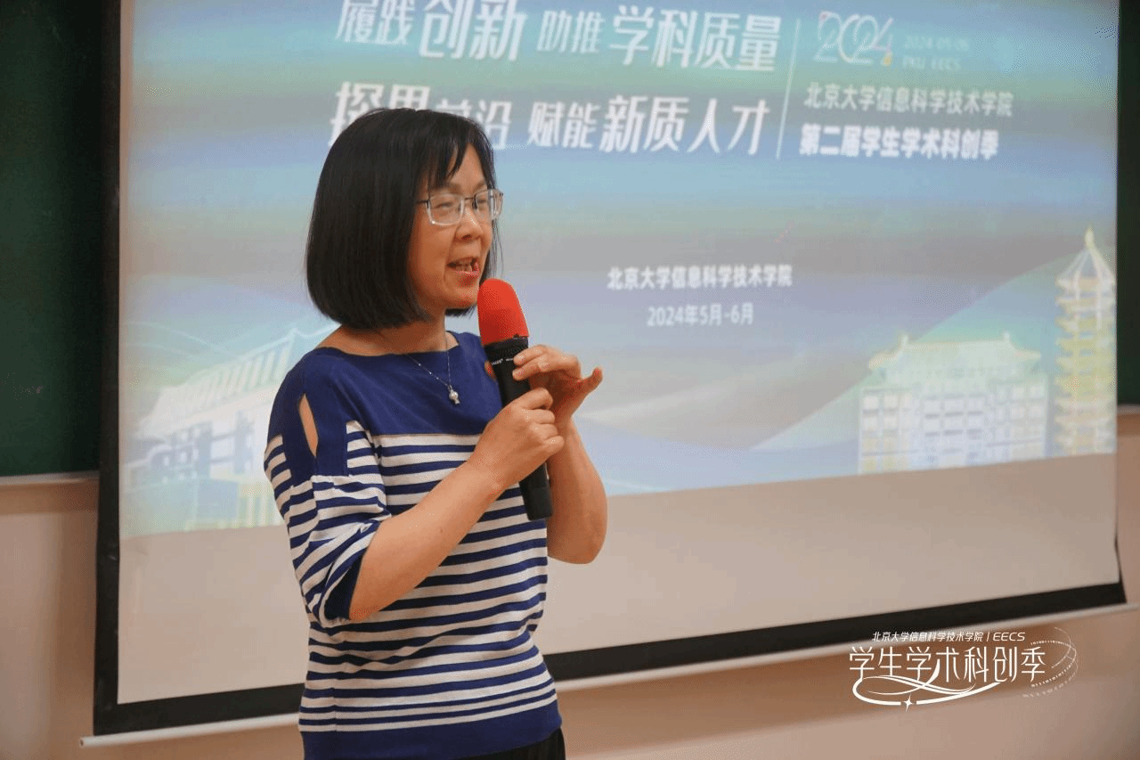 在亮点报告环节中,同学们用简洁明了的语言,介绍了自己的科研项目和成果。同学们的研究领域涉及普通微控制器上实现内存高效的语言模型推理、滚动混合比特脉冲模式重建高帧率高动态范围视频、基于超大规模可重构超表面的近远场混合雷达技术研究等。同学们利用图表和实验数据,生动而具体地展示了自己的研究成果,让现场观众对信科学院本科生科研成果有了更深入的了解和认识。