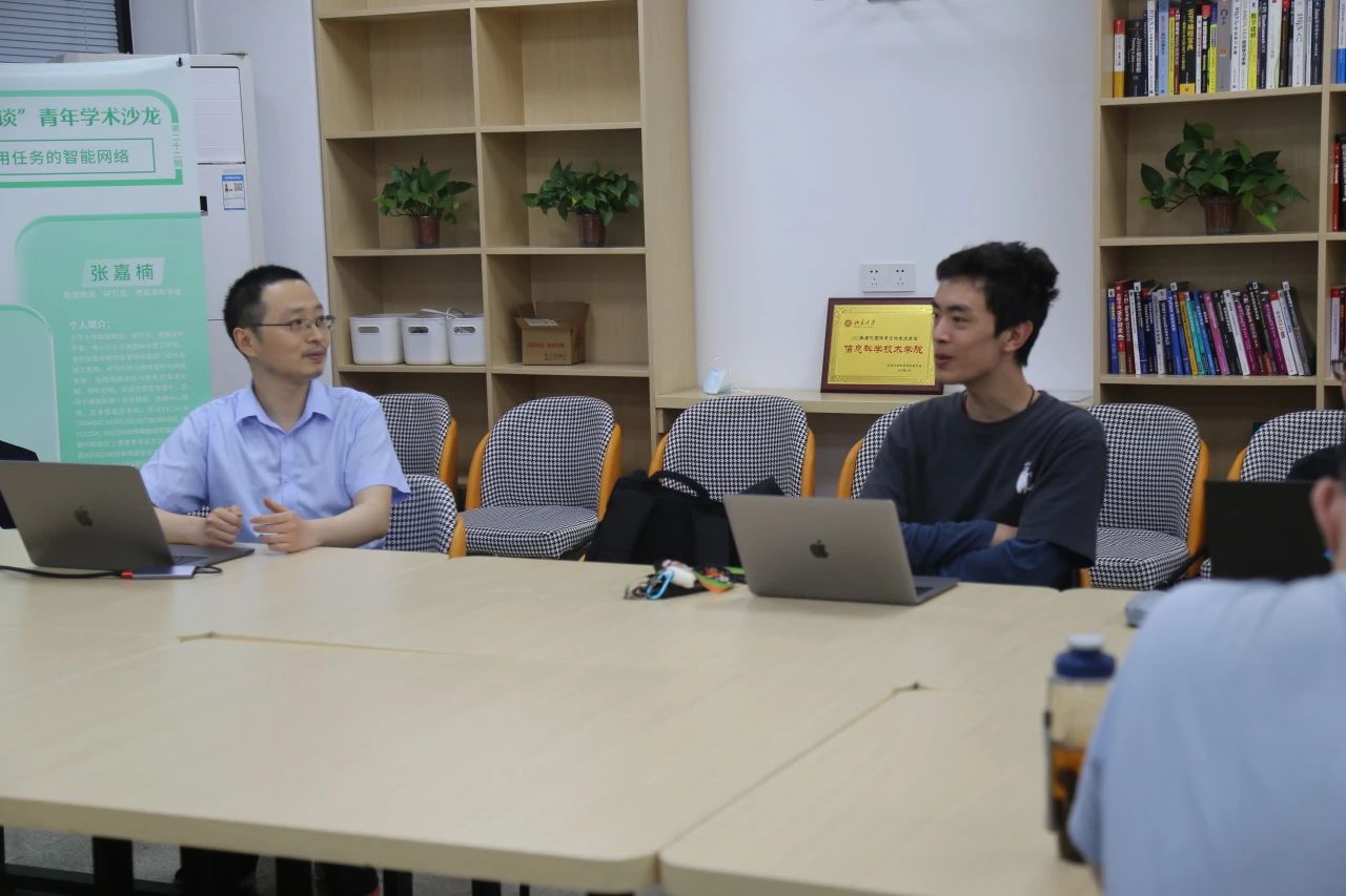 电子学院助理教授、研究员张嘉楠老师受邀进行了以“面向通用任务的智能网络”为主题的分享。学院团委副书记刘天怡老师参加了本次活动。本次沙龙由院青年志愿者协会毛川同学主持。