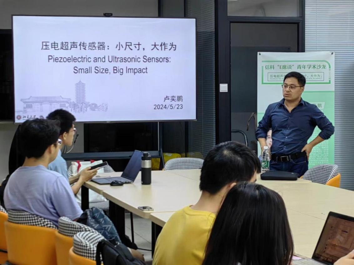 集成电路学院集成电路学院集成微纳系统系副主任卢奕鹏老师受邀进行了以“压电超声传感器:小尺寸,大作为”为主题的分享。本次沙龙由信息科学技术协会主席袁云鹏主持。学院团委书记吕媛老师参加了活动。
