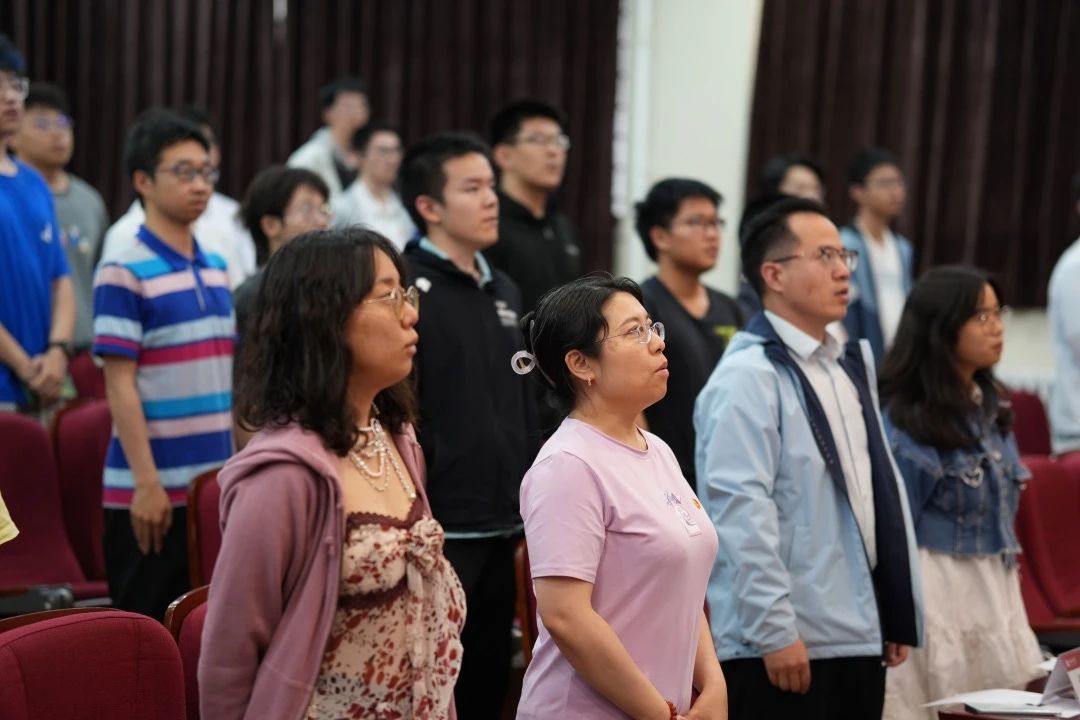 老师学员们全体起立,热情洋溢地唱响中国共青团团歌。伴着五月花海的歌声,同学们洋溢的青春热情和风采被淋漓尽致地展示出来。
