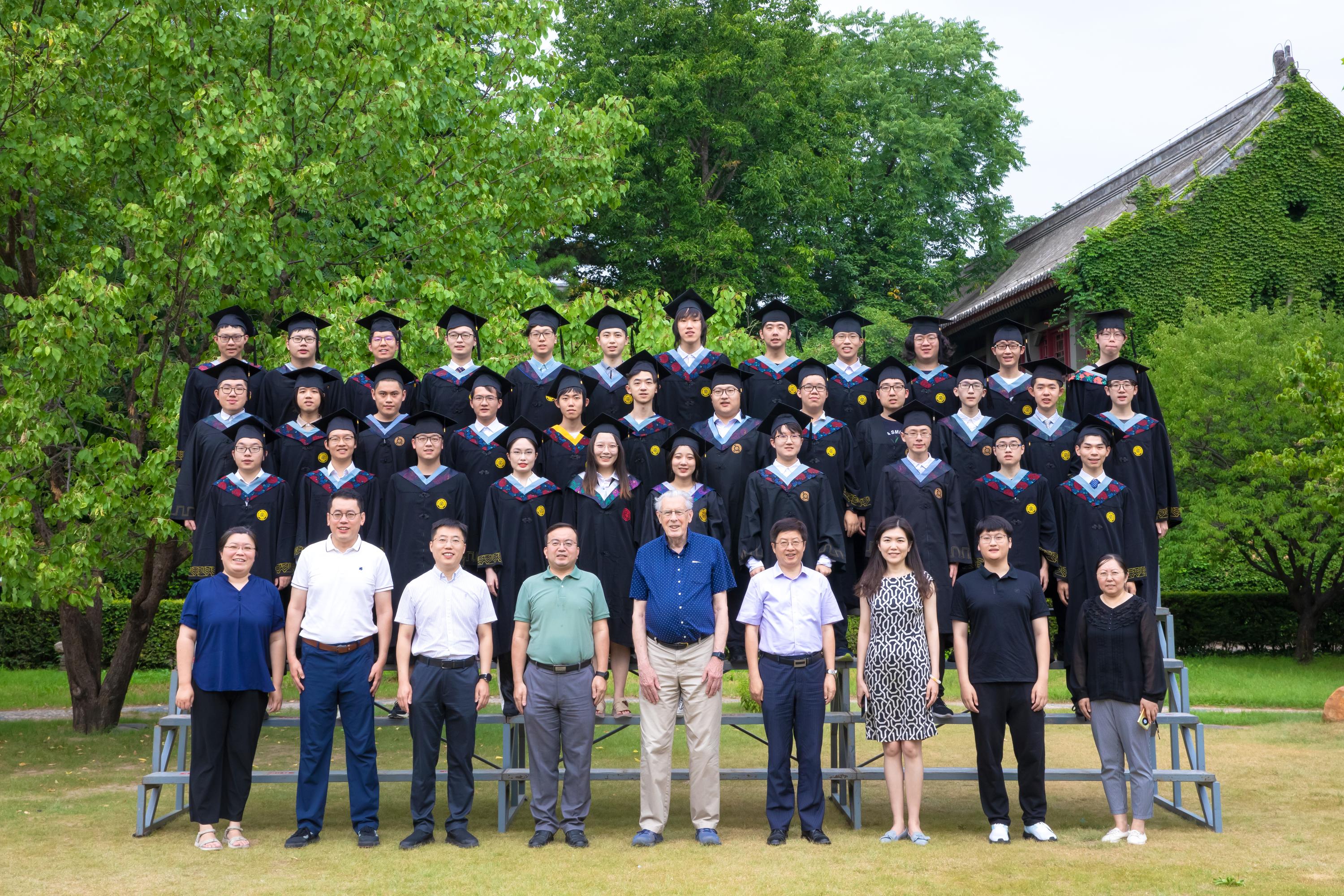 九点整,大家准备拍摄毕业合照。老师和同学们站在与四年前相同的位置,留下了毕业的纪念照。在第二张合照中,同学们的家长也参与其中。最后,在第三张合照中,同学们将学士帽抛向天空,象征着他们从本科学业的束缚中解放出来,即将踏上更广阔的天地。
