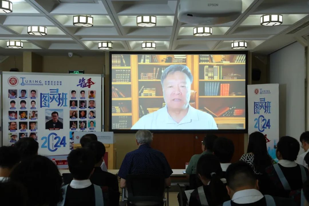 首先,信息与工程科学部主任、前沿计算研究中心联合主任高文院士通过视频致辞。他首先赞扬了2024届图灵班优异的科研成绩:发表了50余篇论文,其中25篇为一作。他希望图灵班的同学们无论是进入学术界还是工业界,都能做到极致,成为行业的领军人物。尽管图灵班的历史相较于清华姚班还很年轻,但他期望在未来的十年或十五年后,图灵班的同学们也能像姚班一样,涌现出一批知名人士,为国家和社会做出最大的贡献。
