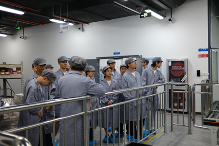 实践团前往瑞斯康达芯片贴合生产线参观。在讲解员的带领下,同学们深入生产一线,近距离观摩了芯片贴合、人工检验等环节,特别是自动化仓库中的运输机器人,使同学们深刻体会到专业相关知识在生产实践中的实际运用和带来的效益,对本专业知识有了更加具体深入的理解。此次参观拉近了同学们和实际生产的距离,坚定了同学们科技报国的信念。