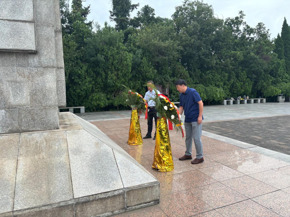 在开营仪式结束后,同学们来到了濮塘革命烈士陵园瞻仰革命烈士纪念碑。李润民、张艺硕、贾一鸣、方大容四位同学代表实践团向革命烈士郑重献上花篮。严敏杰书记和马鞍山市委组织部常务副部长杨代军向前为花篮整理绶带。最后,在场所有人员向革命烈士行默哀礼。