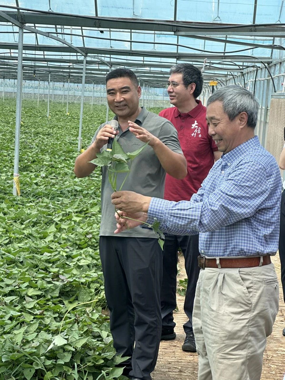 金藤薯业技术人员带领实践团成员参观红薯栽培温室