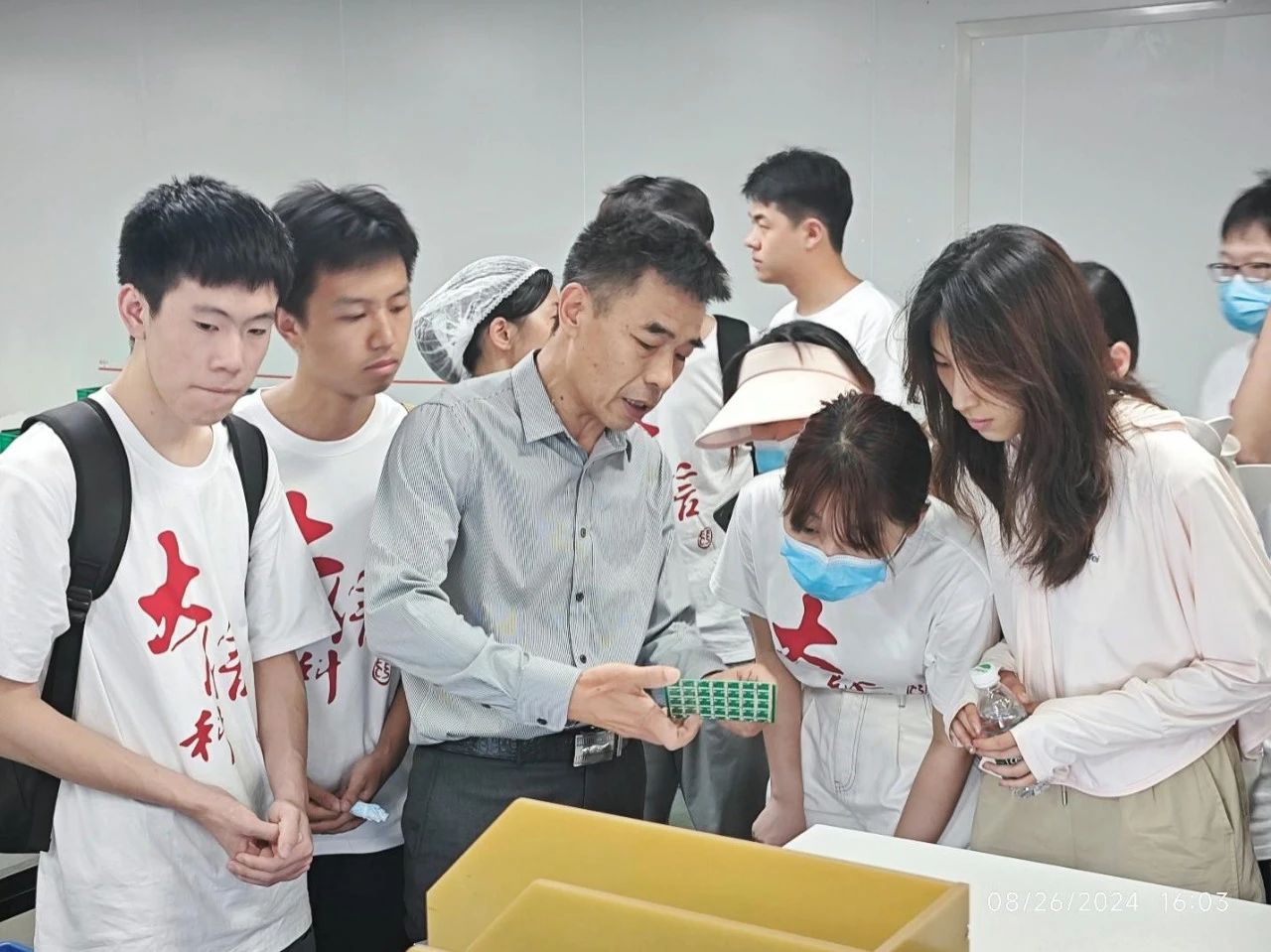 工作人员向同学们展示成品电路板