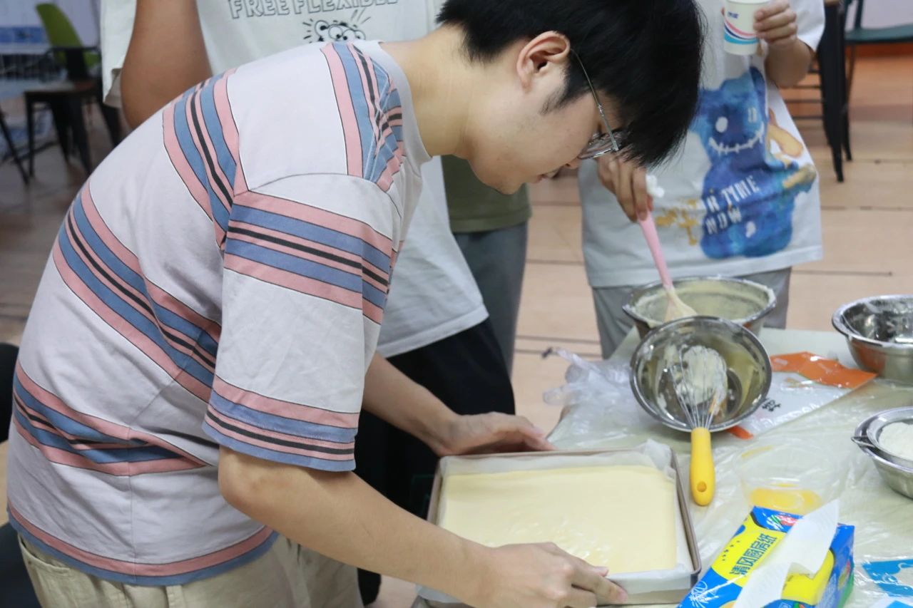 大家围在烤箱旁,耐心等待着蛋糕的烘焙。空气里弥漫着甜香,惹人垂涎。此时,场上的音乐声响起,同学们纵情歌唱。温馨而美好的一幕,成为了大家共同享受的时光。