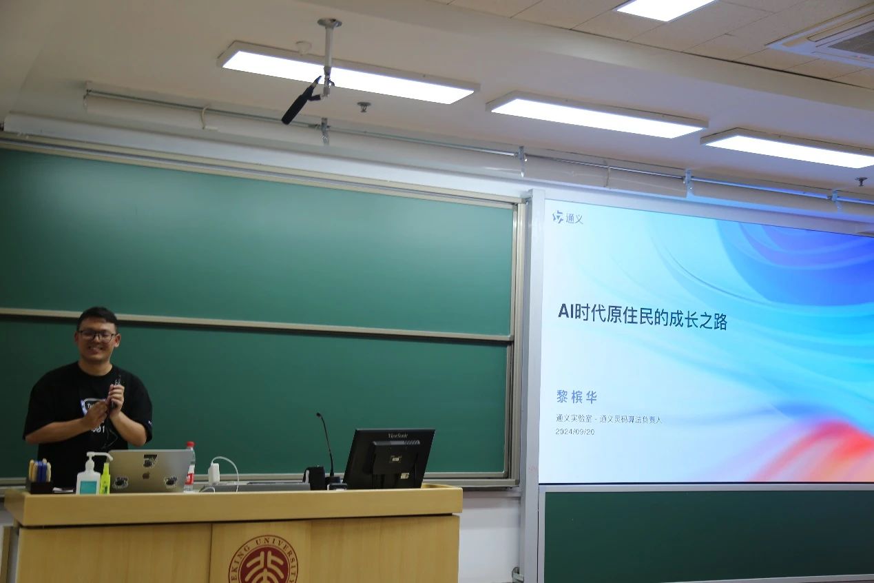 第二十六期“知存讲座”暨信息科学前沿与产业创新课程在理科教学楼107教室顺利举办。阿里巴巴通义实验室算法专家、通义灵码算法负责人黎槟华先生受邀进行了以“AI时代原住民的成长之路”为主题的报告。学院党委副书记贾方健主持了本次讲座。