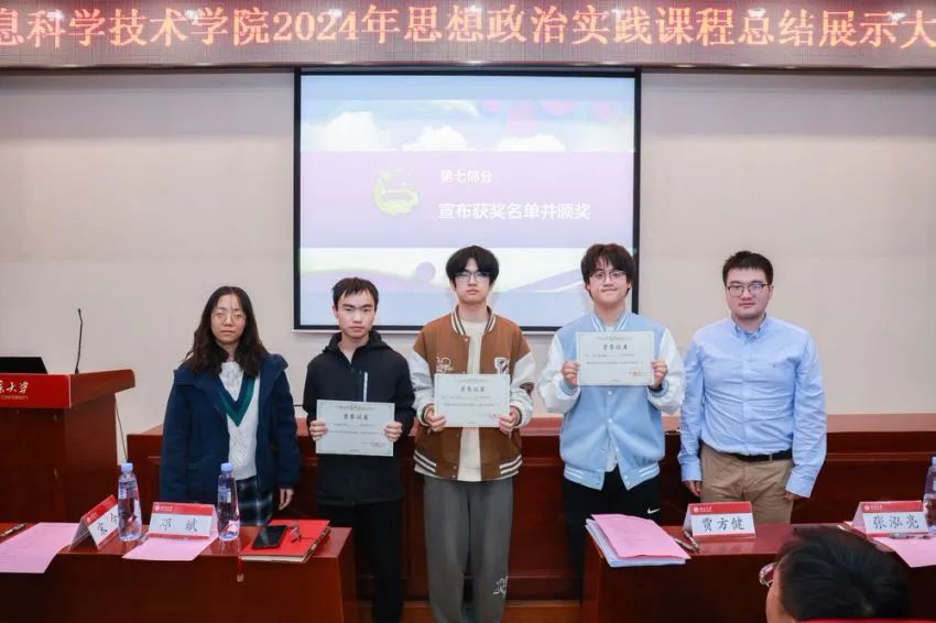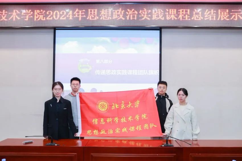 最后,由23级的学生代表张语菲和沈睿弘将学院思政实践课程团队旗帜传递给24级学生袁琳和马未然,象征着思政实践课程的薪火相传与不断发展,思政实践的精神将在一届届信科青年身上赓续。