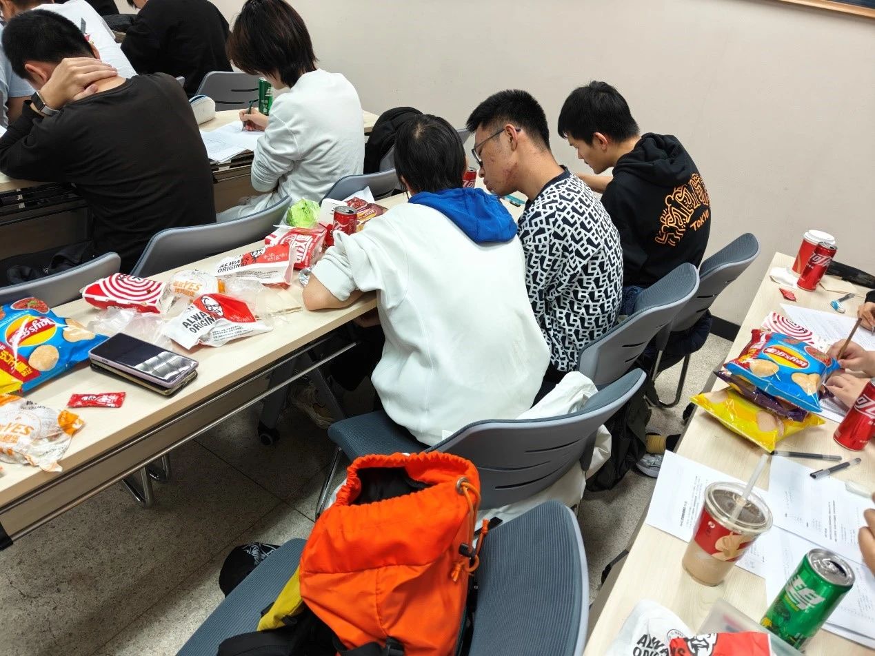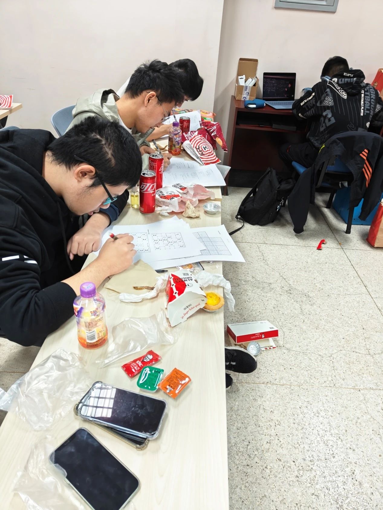 赛程过半,题目逐渐进入深水区。攻城狮们把补充的能量通通灌入大脑,每一个选手都酝酿着一场头脑风暴。或满案稿纸、或掩卷沉思、或紧咬笔头、或托腮冥想……许久,一笑,下笔,勾画,题解,一气呵成,气贯长虹!