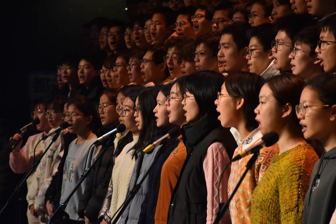 晨雾氤氲,初升的旭日尚未驱走弥漫的寒意,但2129教室早已热火朝天——教唱组学长学姐们正带着合唱组小狮子们开嗓练声,从单音到和声,悦耳的音符迫不及待地流转而出,将大家的困意一扫而空,待到排练合唱曲目时,便已是一副朝气蓬勃、精神抖擞的模样。高音婉转嘹亮、低音厚重雄浑,大家都争着把自己最好的状态调动出来,以迎接这不平凡的一天。一曲终了,大家热烈鼓掌,为自己加油打气,在热情洋溢的气氛中,集体前往百周年纪念讲堂,进行正式彩排。