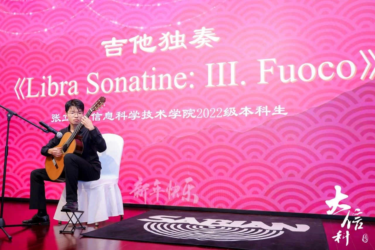 桑钰超同学演唱的《悟空》,独特的嗓音很好地诠释出歌曲中的沧桑感和悟空的英雄气概,将歌曲中的复杂情感表达得淋漓尽致,张立儒同学的吉他独奏《Libra Sonatine: III. Fuoco》,每一个音符都充满了情感和力量,而杨子涵同学带来的吉他独奏《Something just like this》,更是拥有充盈的情绪。夏中豪同学带来的歌曲《青火》蕴含着青年人对未来的思考以及对梦想的执着。