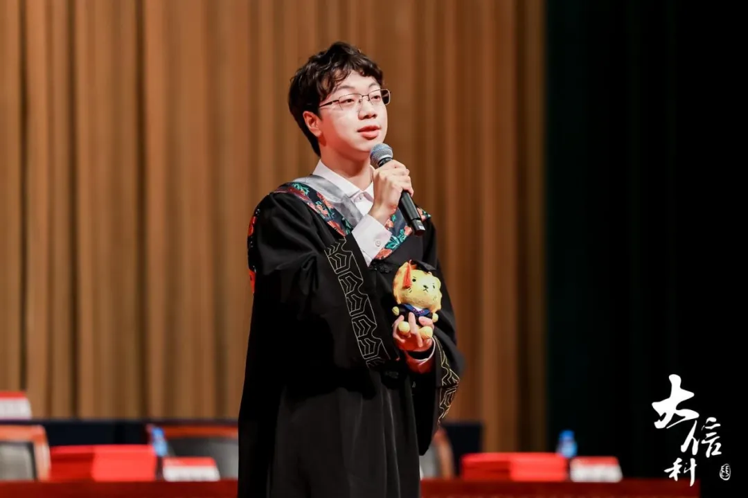 2025届集成电路设计与集成系统专业毕业生王嘉瑞将自己比作信科这个大模型训练平台的独特的“智能体”,回望了本科生涯中充满难忘回忆的“训练数据”。他提到,在这个AI也在潜移默化地影响人类的时代,大家更当抓住机遇,应对挑战,以更有思考的分析者、更有主见的决策者和更有勇气的行动者的身份,顺应时代、改变时代、开创时代,为建设科技强国而努力,为推动人类发展而奋斗。