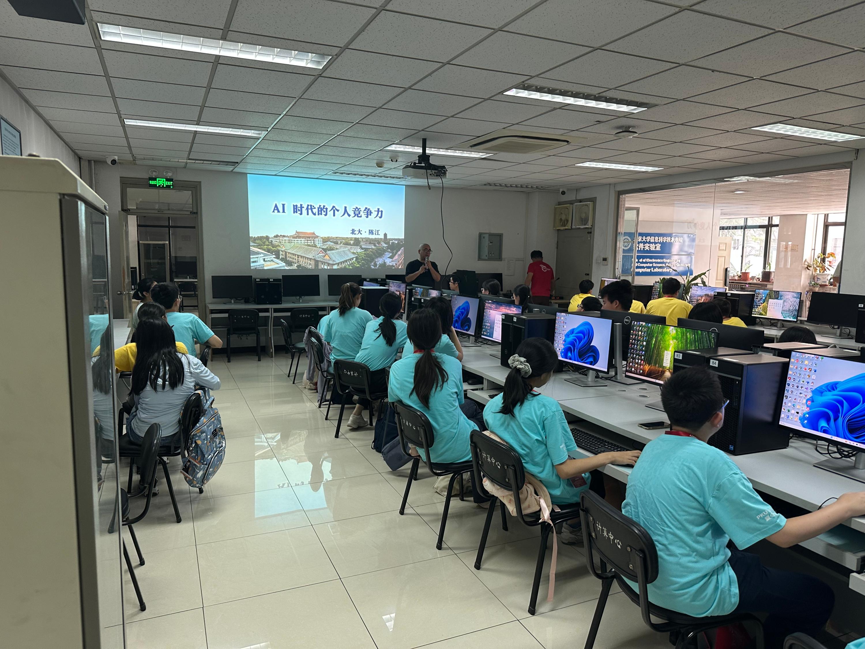 76日上午,成人网站 陈江教授为营员们带来了前沿讲座:“AI时代的个人竞争力”。同学们认真听讲并现场在老师的指导下试用了各种主流AI工具完成了各种类型的任务,对前沿科技和工具,以及在AI时代的个人定位与发展产生了更加深刻的思考。