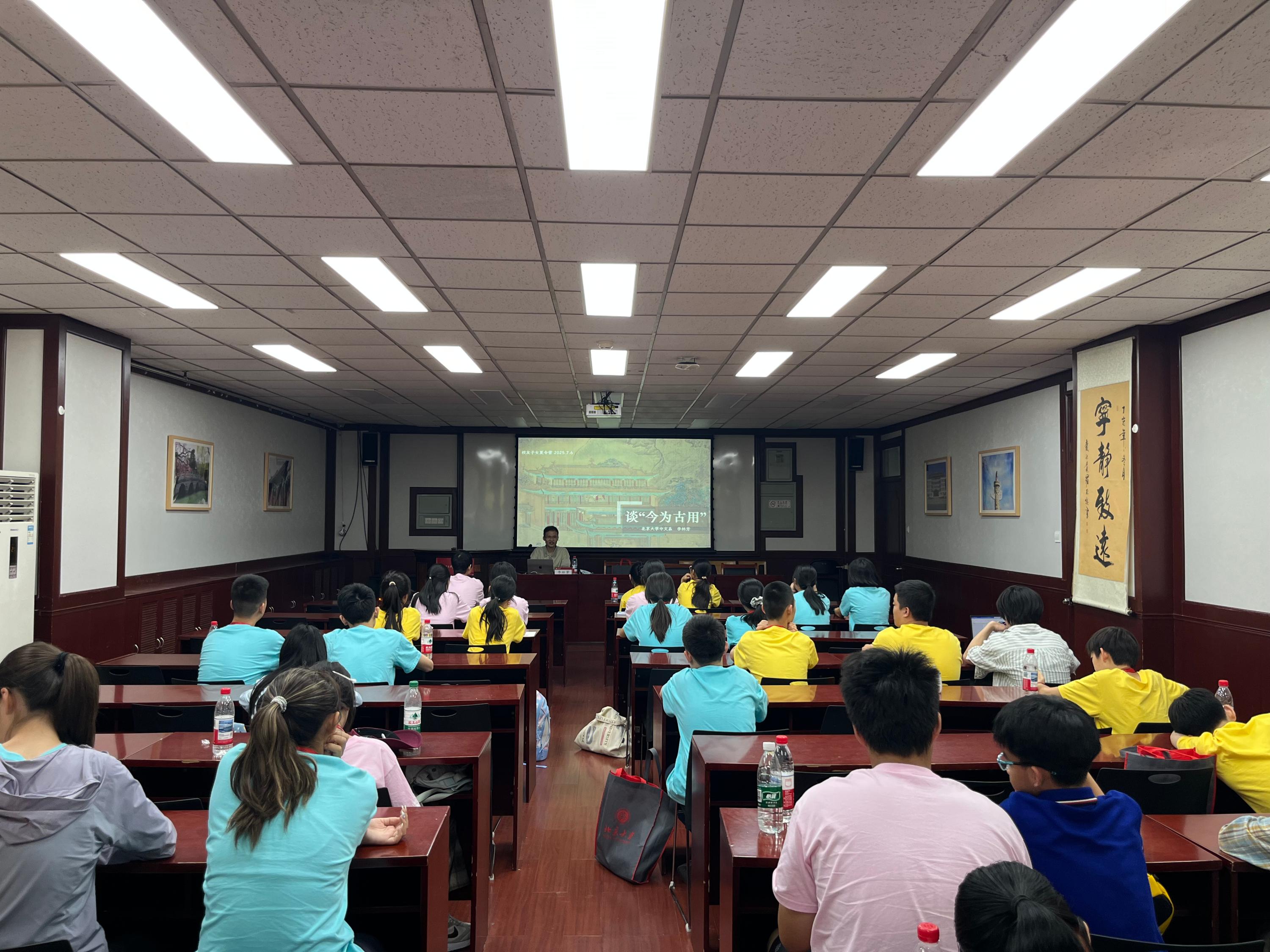 76日下午,成人网站 中文系李林芳助理教授带来的讲座“谈‘今为古用’”,为营员们打开了另一扇大门。李老师从各地方言和诗歌的节奏与意境入手,描述了汉字的由来和发展,结合自己在北大求学和教学的经历,分析了古诗词与朝代更迭的关联。他指出,现代人可以跨越时空与古人的精神世界实现相通。